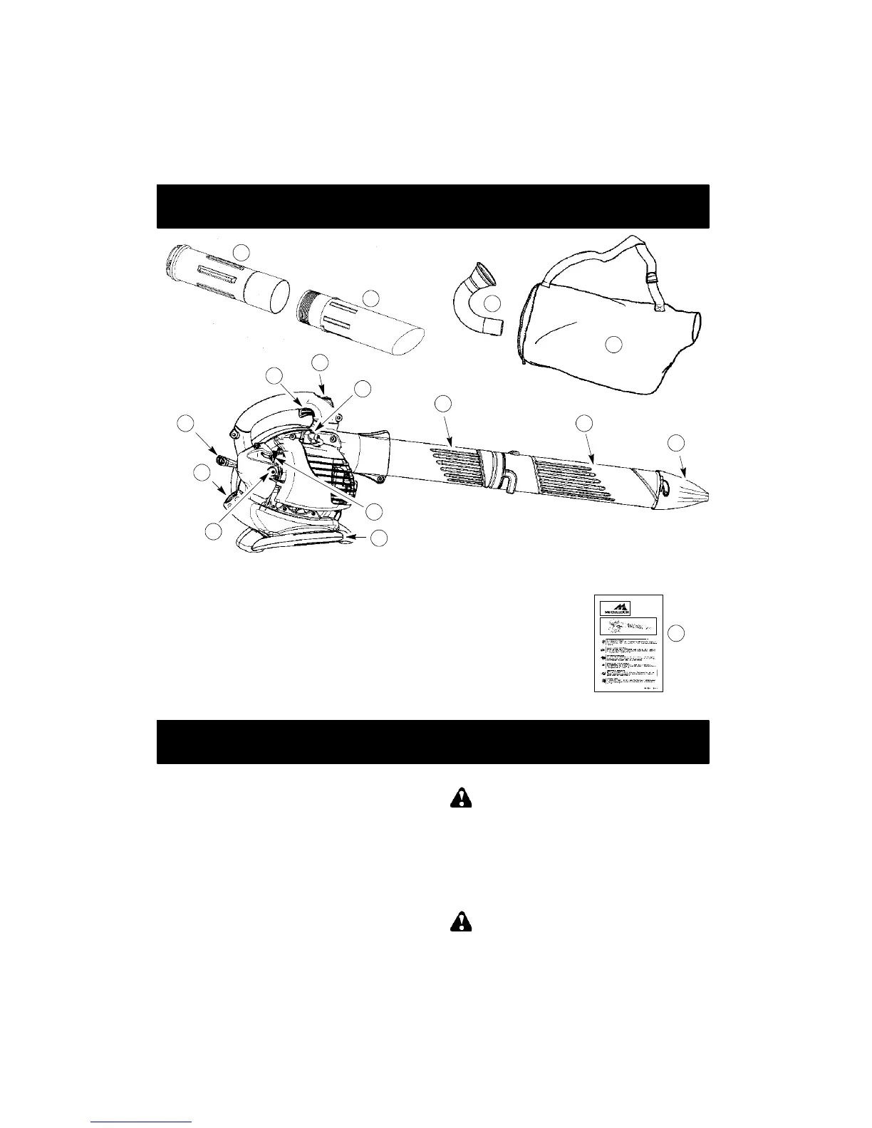 1. Throttle trigger 9. Upper blower tube
