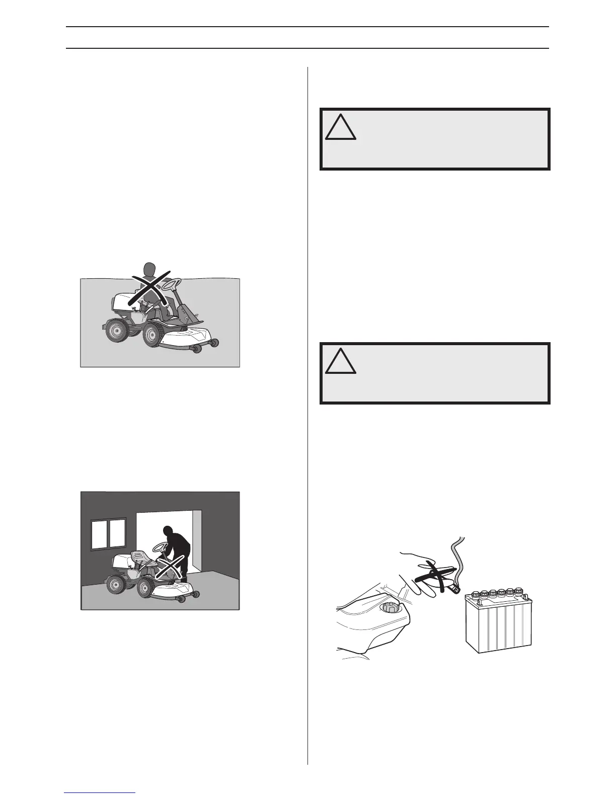 • Never allow children to ride along. They can fall off and