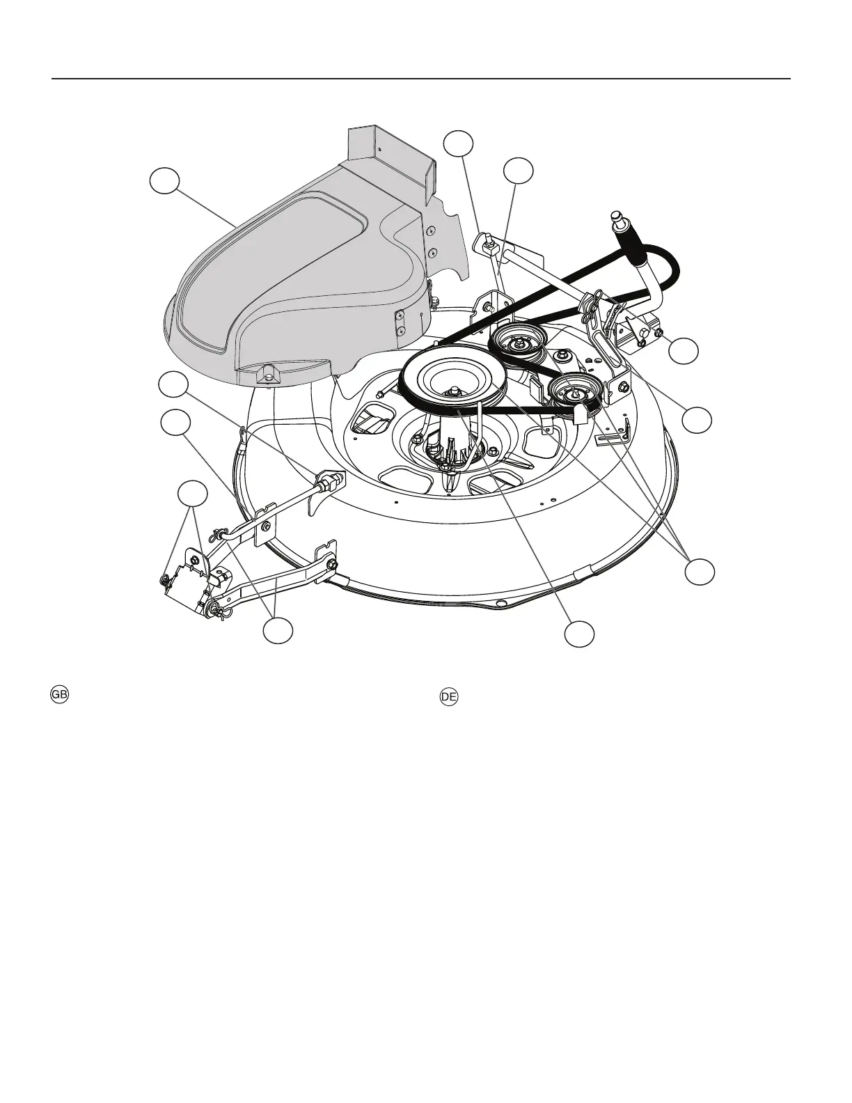 • Den Haltestift (7) des Verbindungsarms (8) des Mähdecks