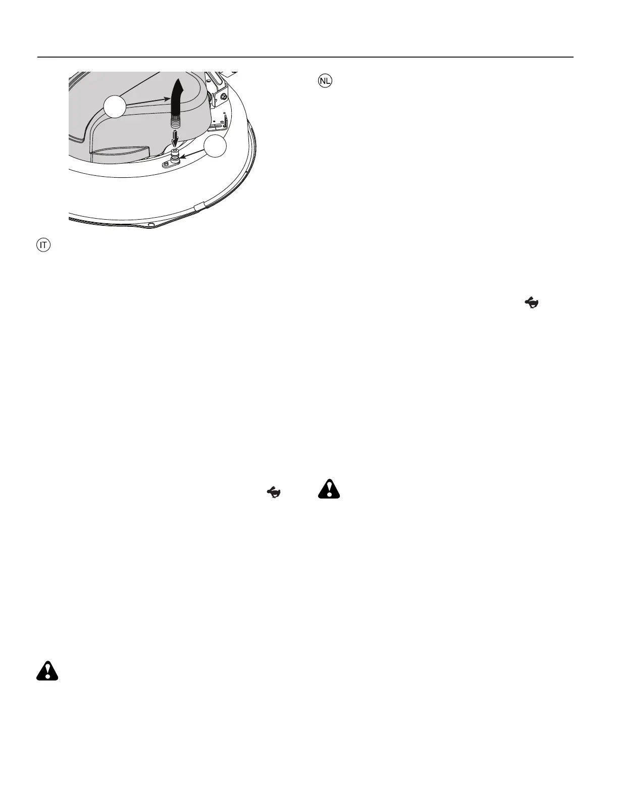 IMPORTANTE: Assicurarsi che il deflettore di scarico del trat-