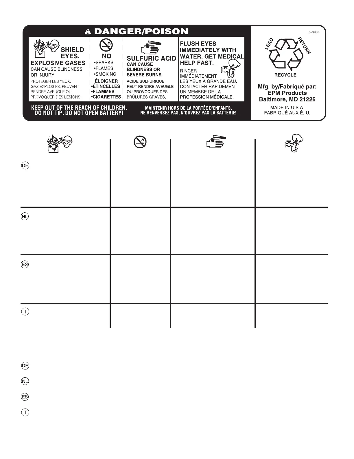 TENERE LONTANO DALLA PORTATA DEI BAMBINI. NON INCLINARE. NON APRIRE LA BATTERIA!