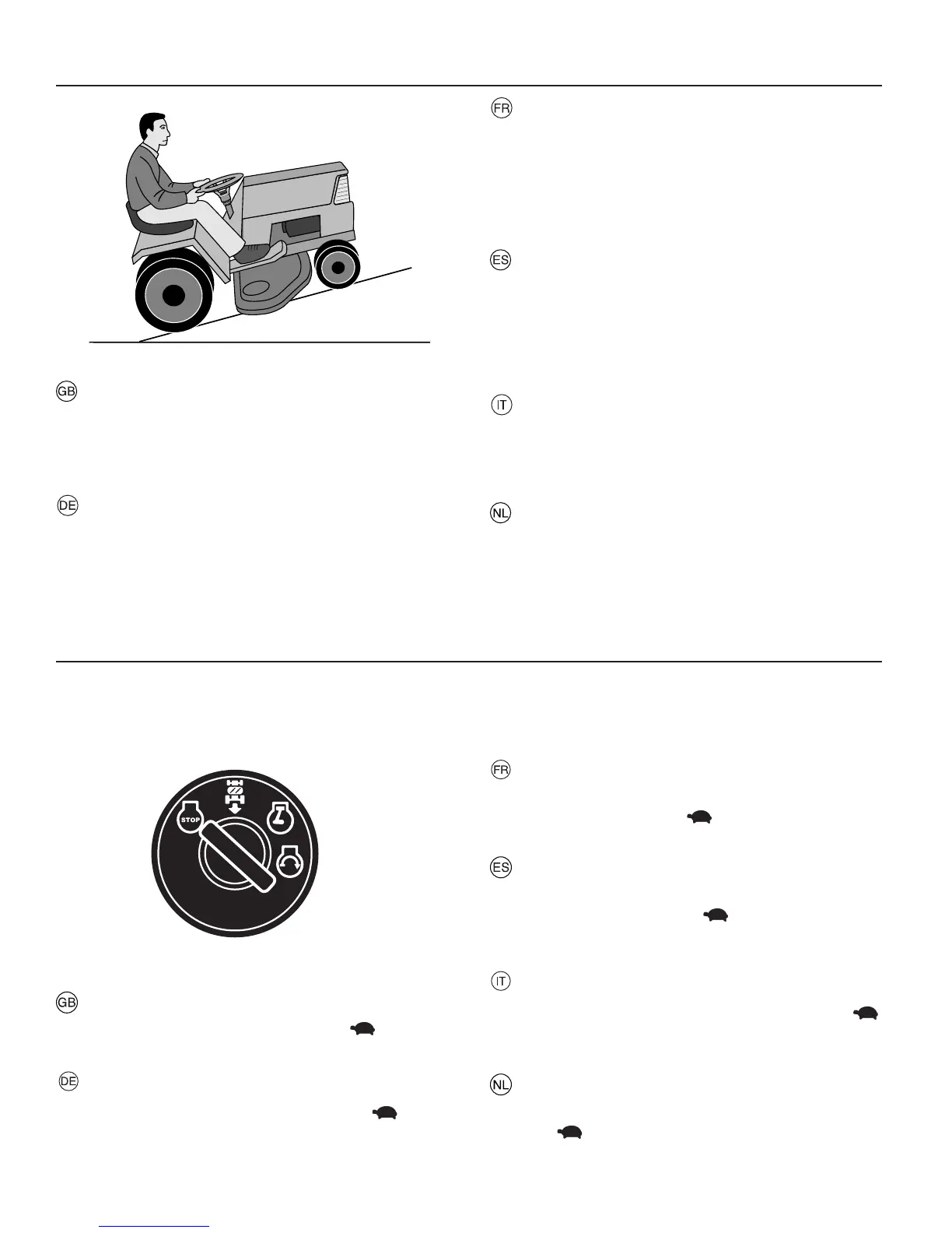 • Ne jamais utiliser un tracteur sur des pentes excédant
