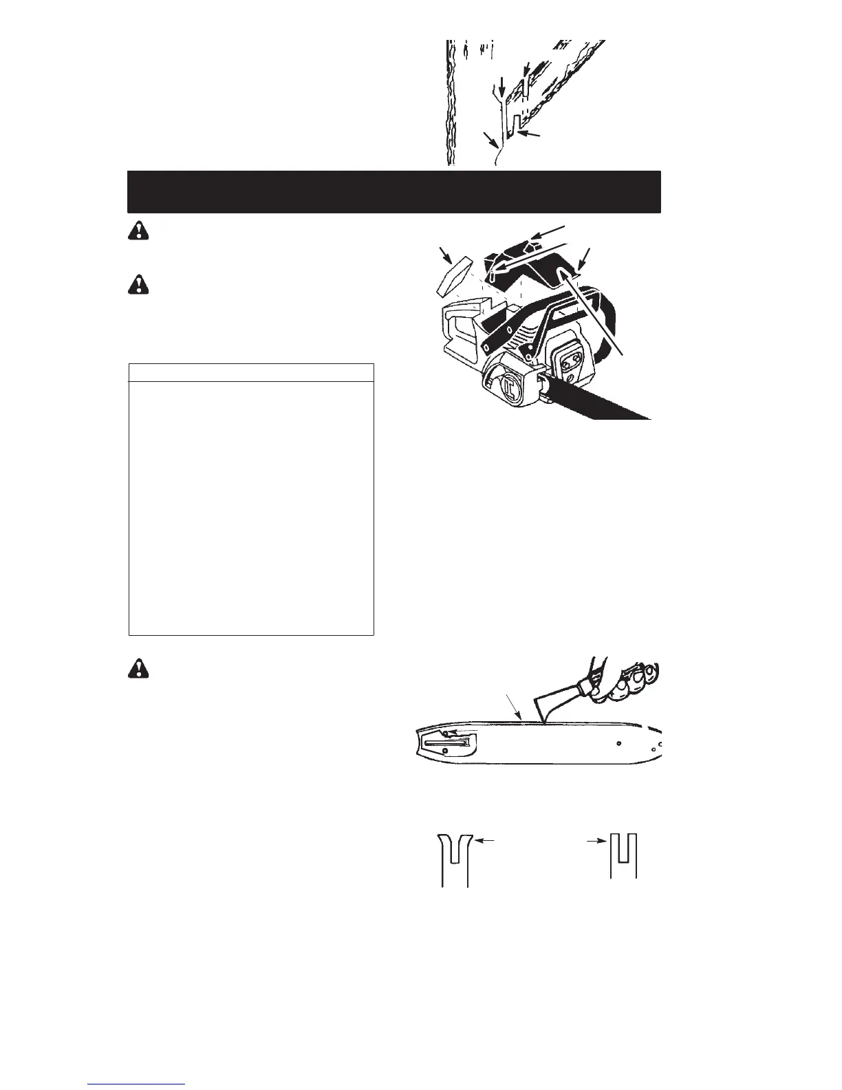 chain brake. Remove bar and chain from