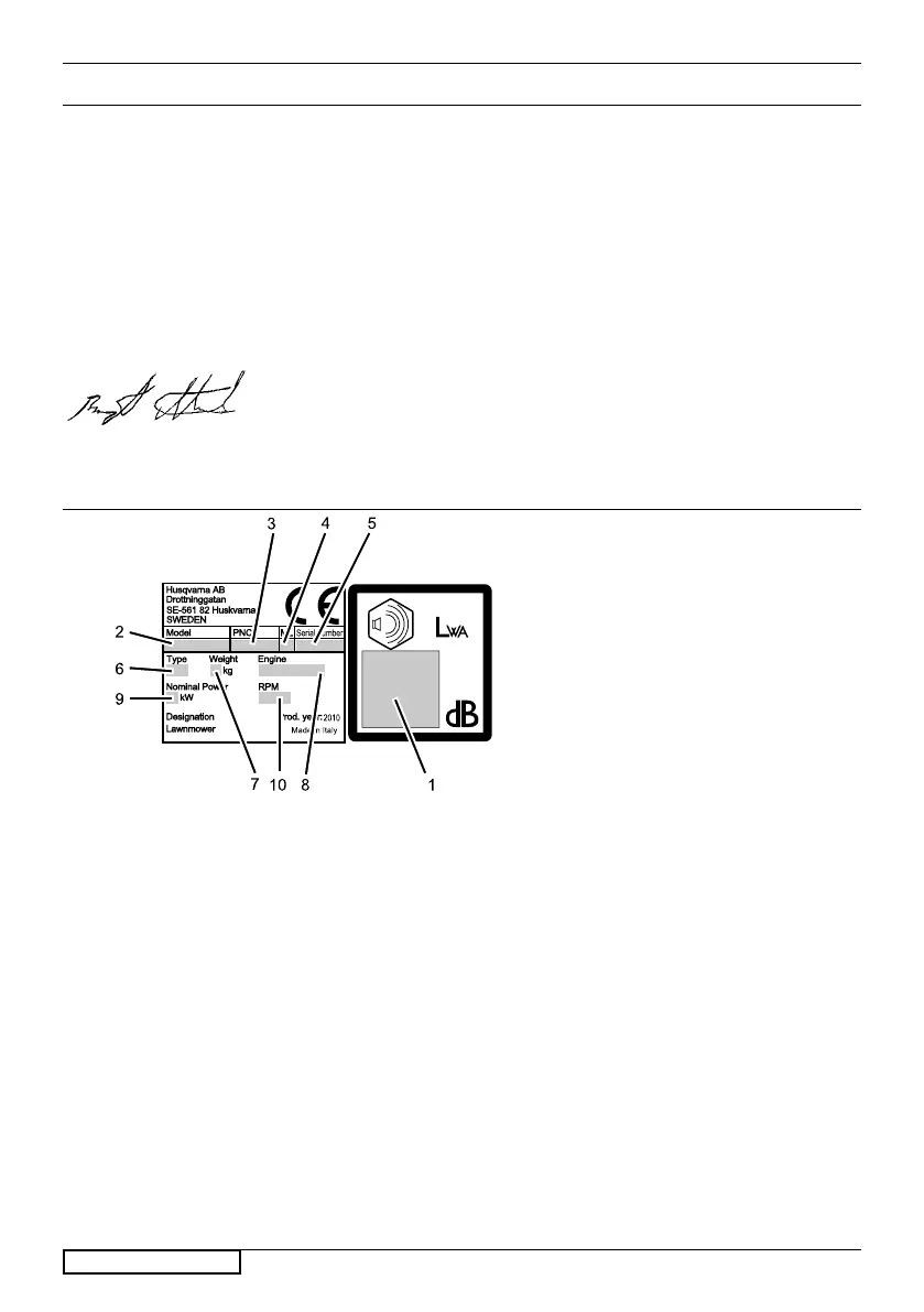 (Upoważniony przedstawiciel Husqvarna AB i pracownik odpowiedzialny za dokumentację techniczną).