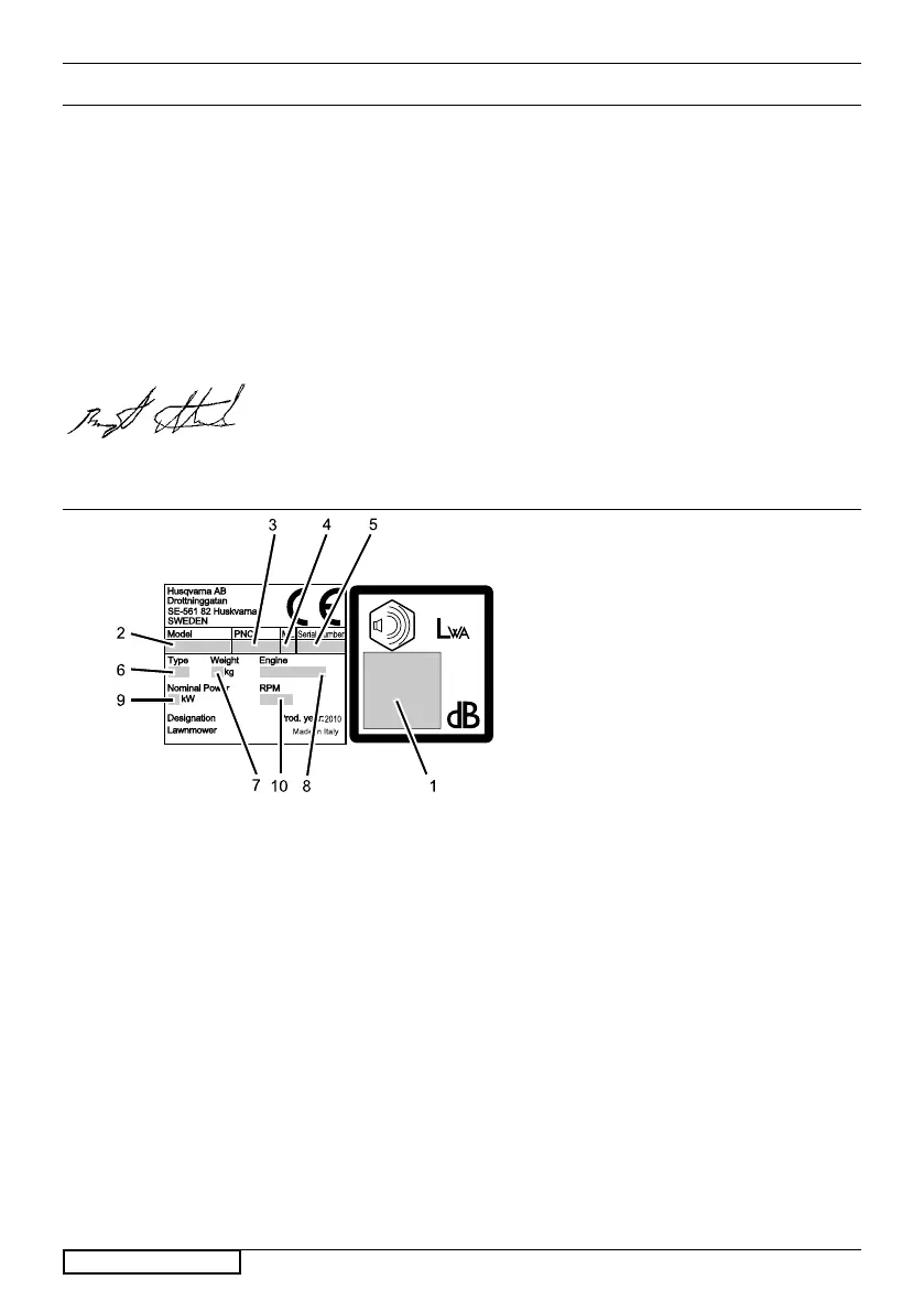 (Husqvarna AB:n valtuuttama edustaja ja teknisestä dokumentaatiosta vastaava henkilö.)