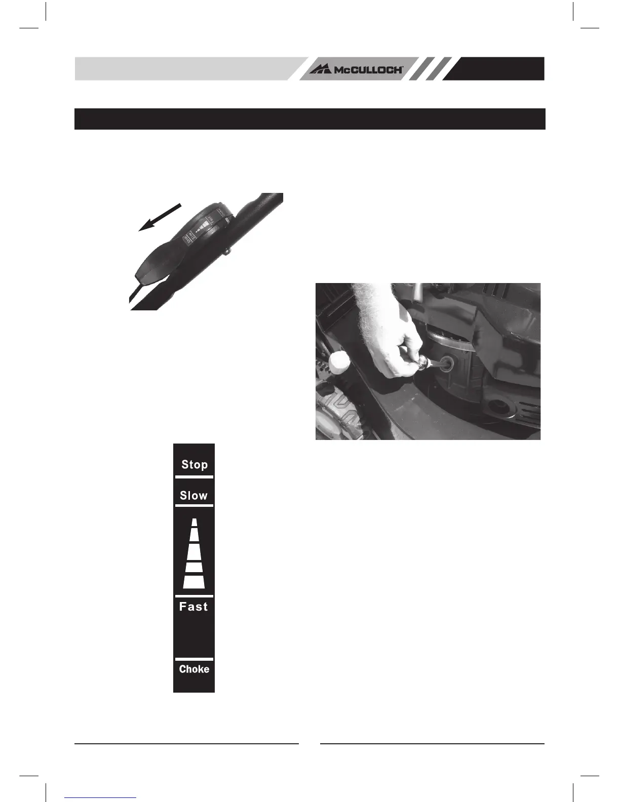 starting, and allows you to set the governed speed of the engine while cutting or to stop the