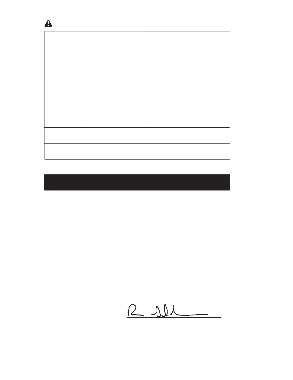 TROUBLESHOOTING TABLE