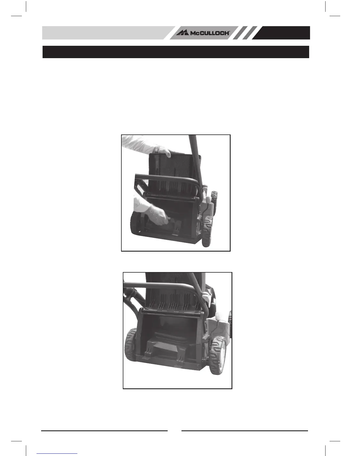 3. Raise the ap with left hand, and using the hand-hold on the mulching plug, insert the mulching plug, with