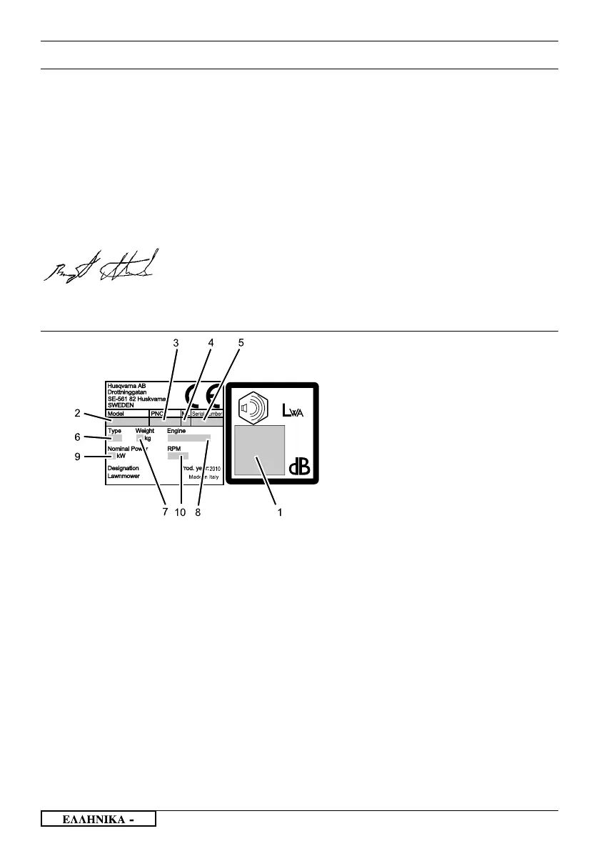 (Εξουσιοδοτημένος εκπρόσωπος της Husqvarna AB και Υπεύθυνος για την τεχνική τεκμηρίωση.).