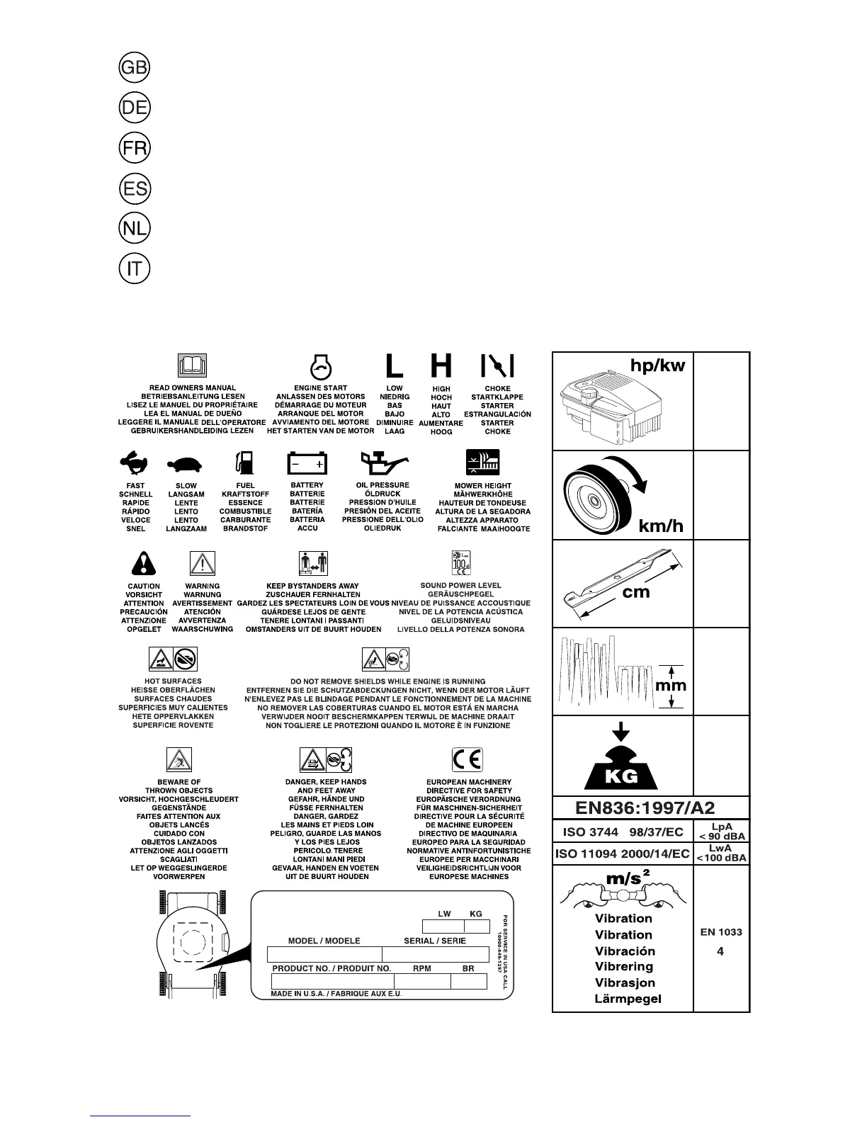 Diese Symbole fi nden Sie auf Ihrer Maschine oder in Unterlagen, die mit dem Produkt ausgehändigt wurden.