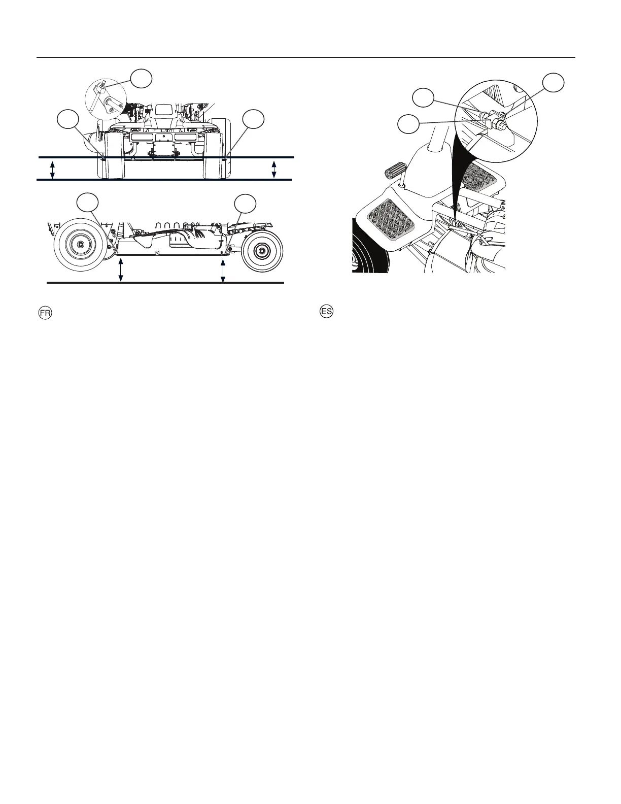 Contrôlez le réglage sur le côté droit de la tondeuse autoportée.