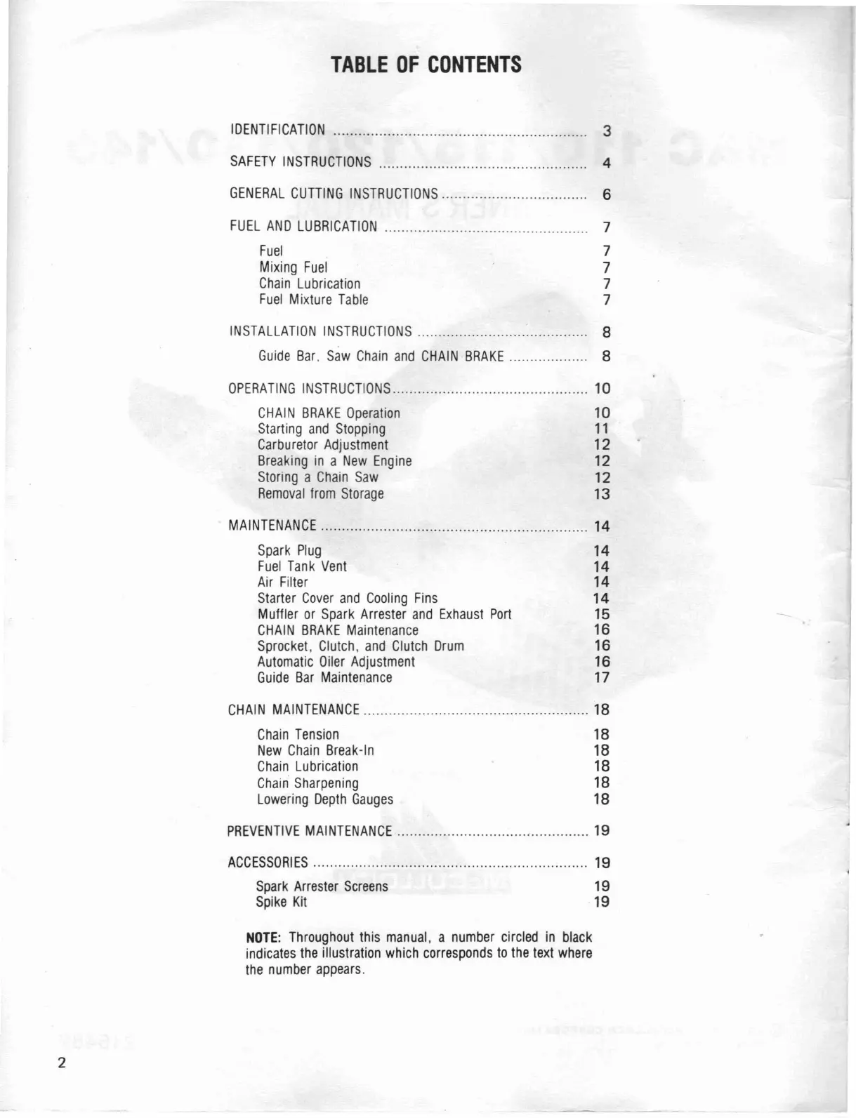 McCulloch Mac 110 - Table of Contents