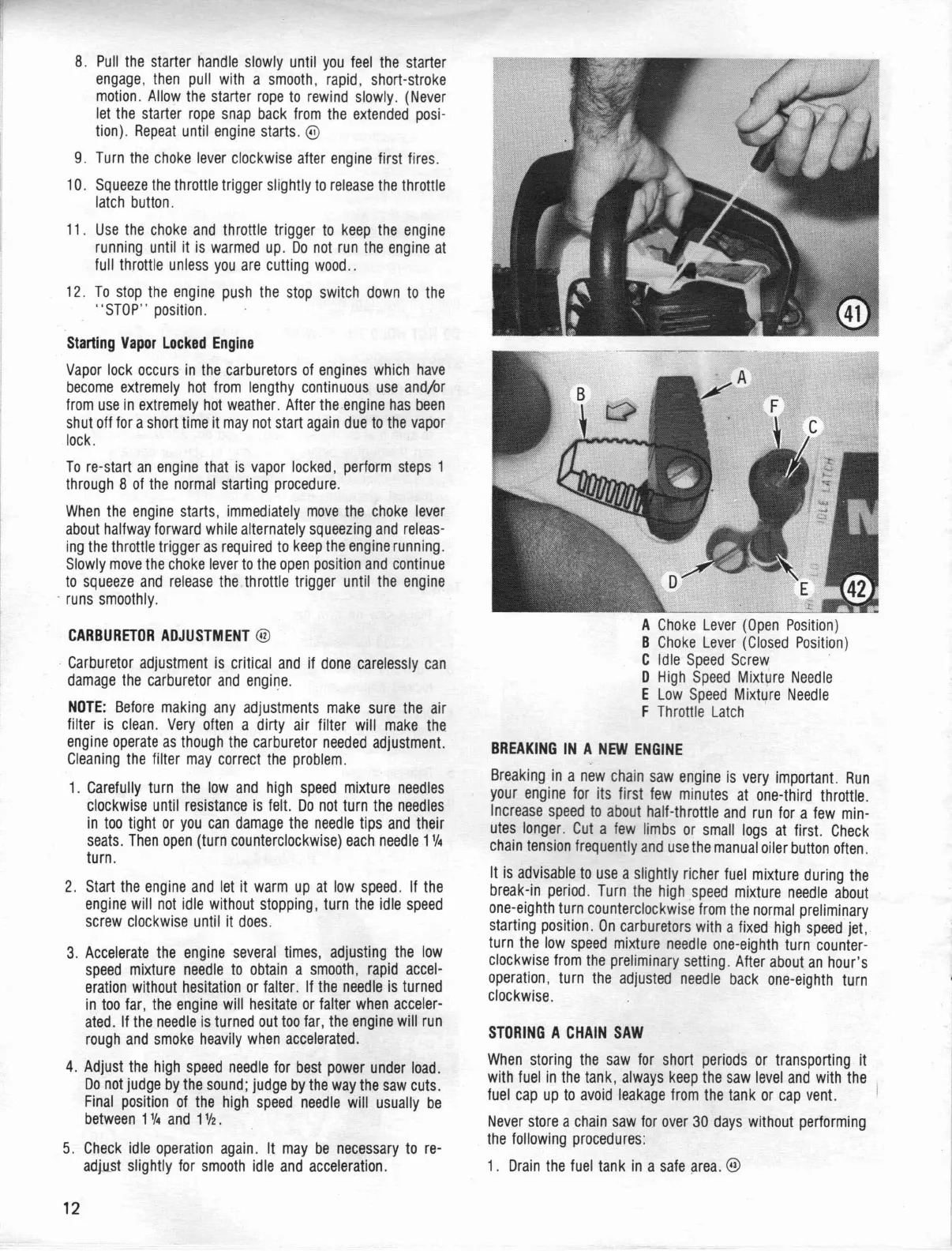 McCulloch Mac 130 - CARBURETOR ADJUSTMENT; Carburetor Tuning; New Engine Break-In
