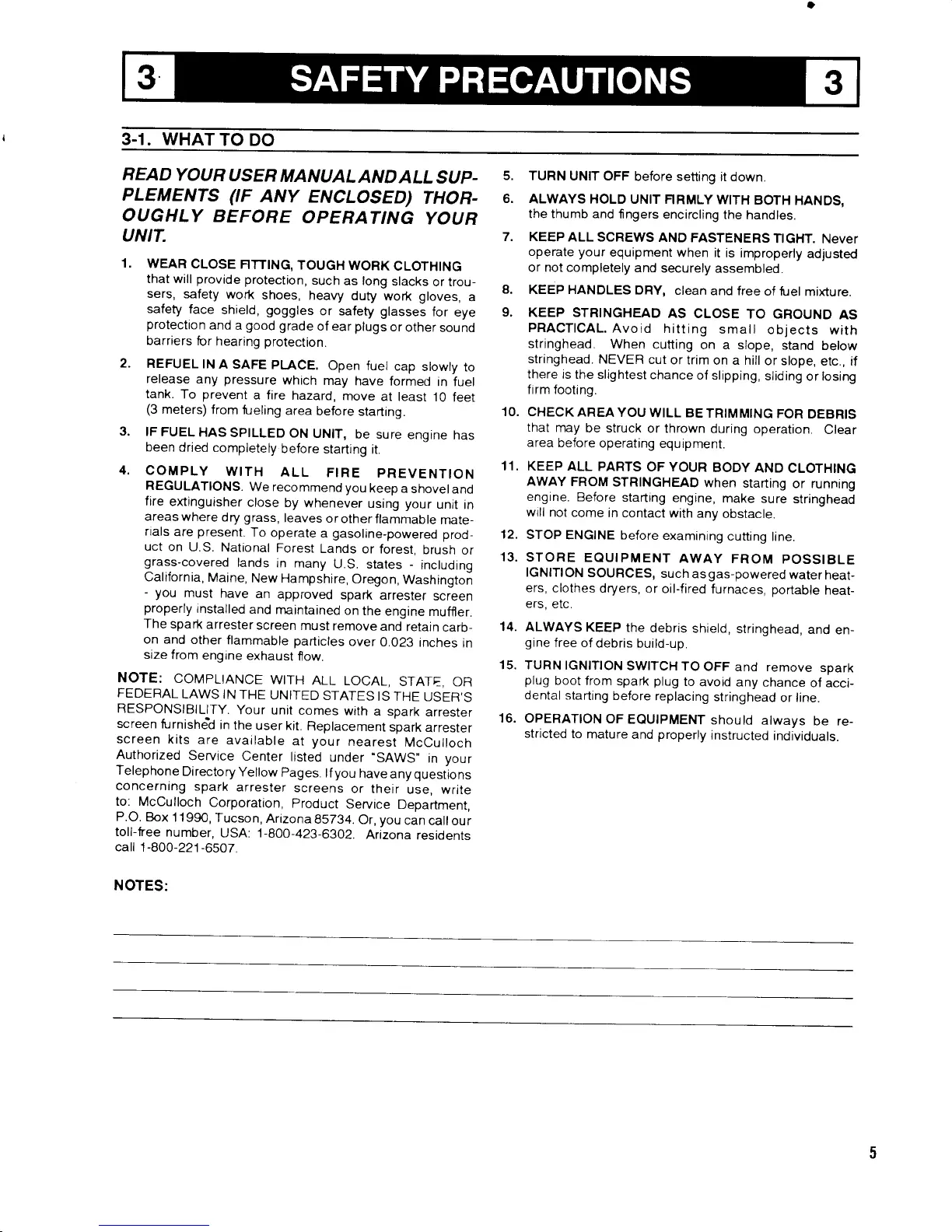 McCulloch MAC 291 - SAFETY PRECAUTIONS; WHAT TO DO