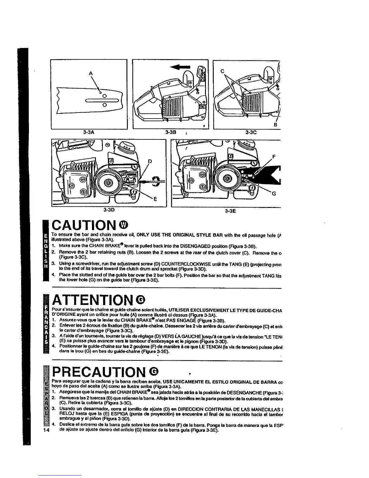 t. Aasurez-vous qua ts lavlar du CHAIN BRAKE® n'est PAS ENGAGE (Flguro 3-3B).