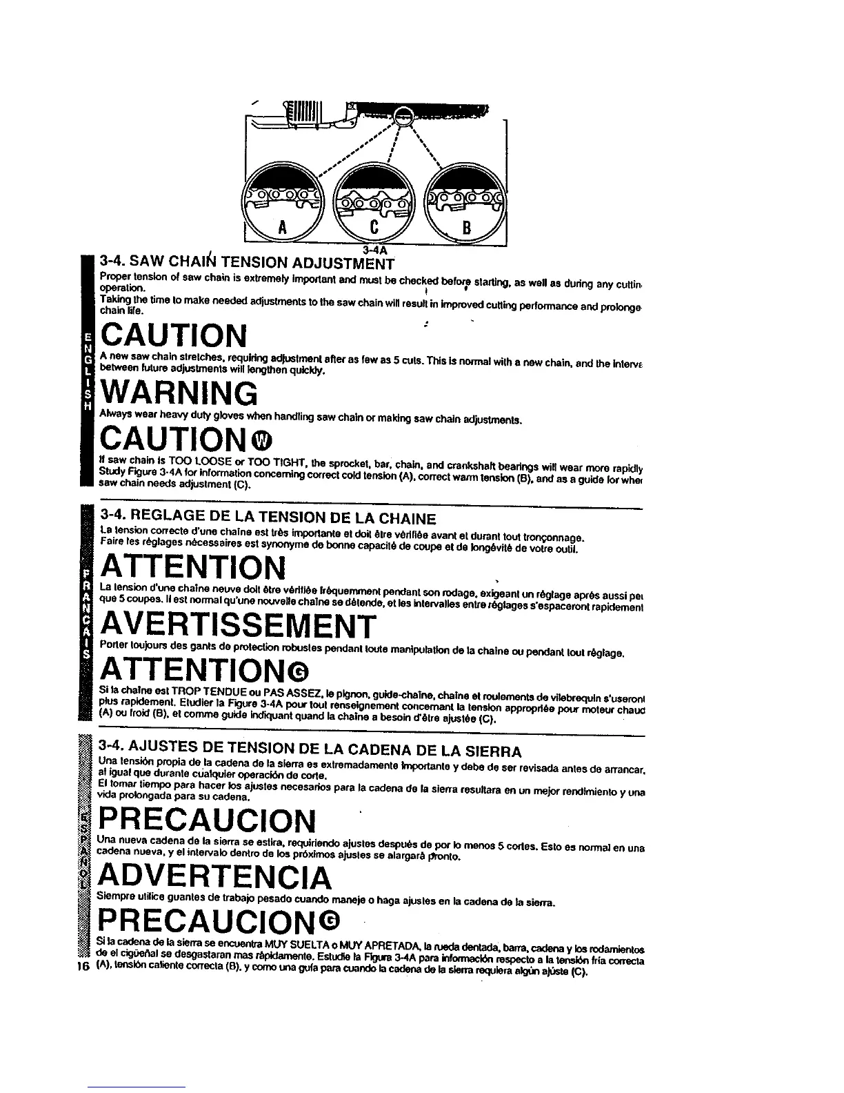3-4. AJUSTES DE TENSION DE LA CADENA DE LA SIERRA
