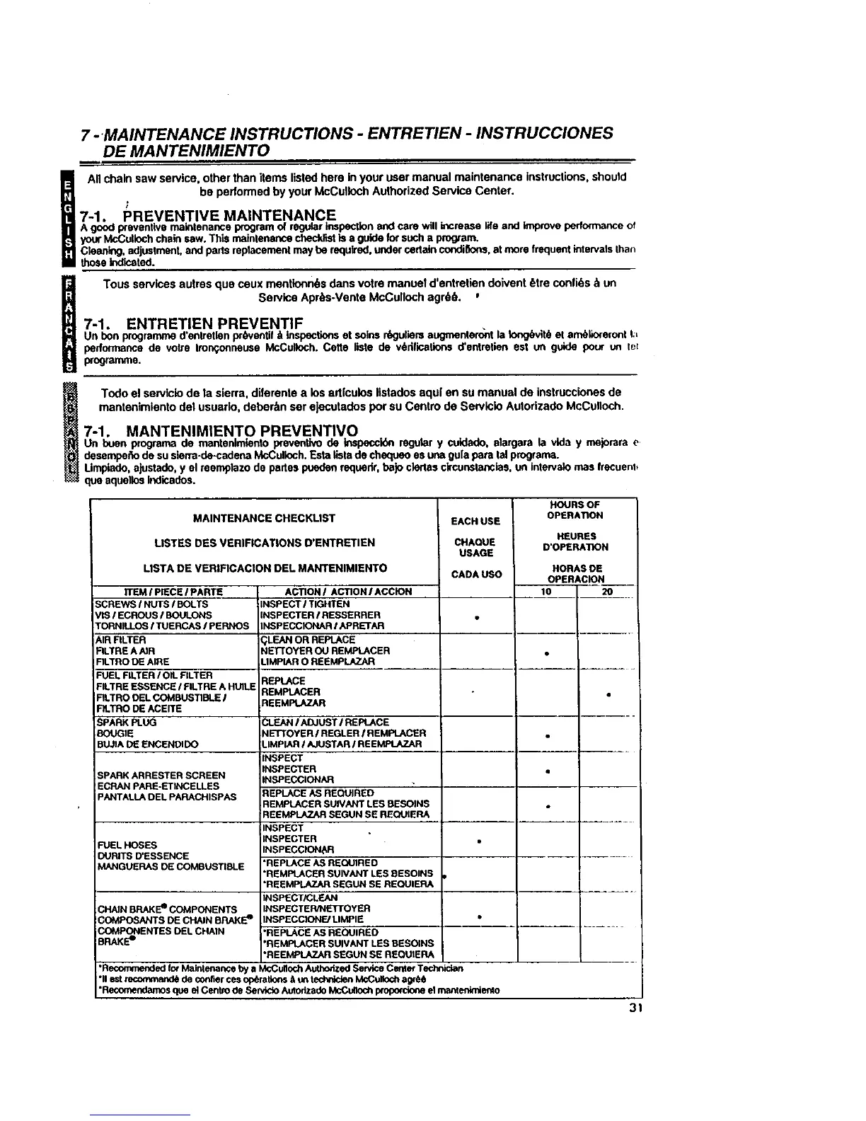 desempefio de su sierra-de-cadena McCulidch. Esta lists de chequeo es una, gu[a pare lal programs.