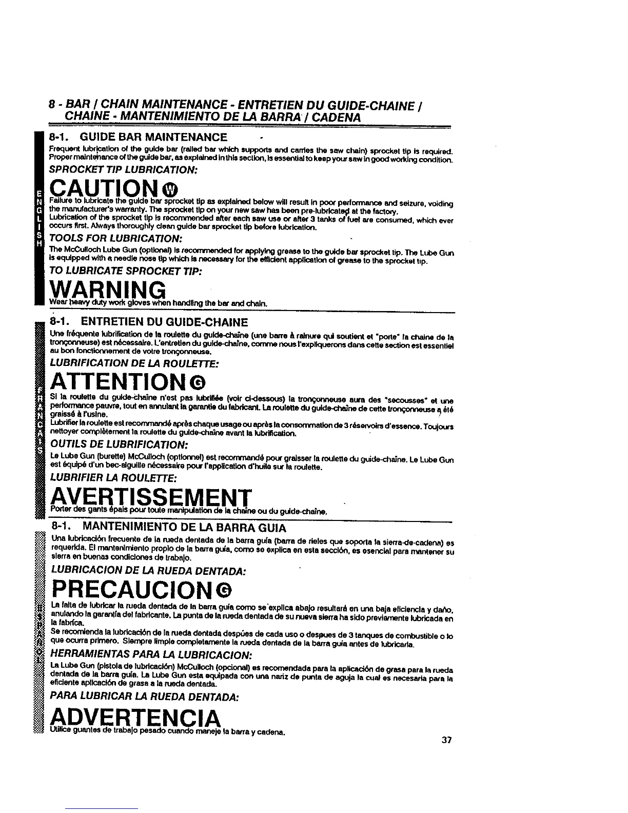 8 - BAR I CHAIN MAINTENANCE - ENTRETIEN DU GUIDE-CHAINE I