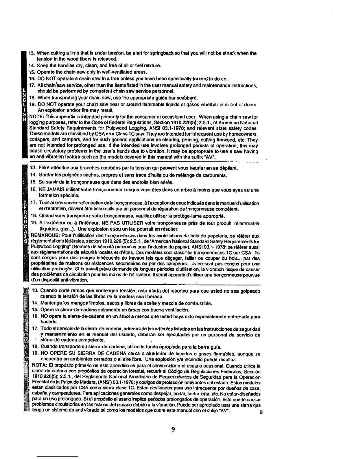 NOTE: This appendix is intended primarilyfor the consumer oroccasional user, When using a chain saw for