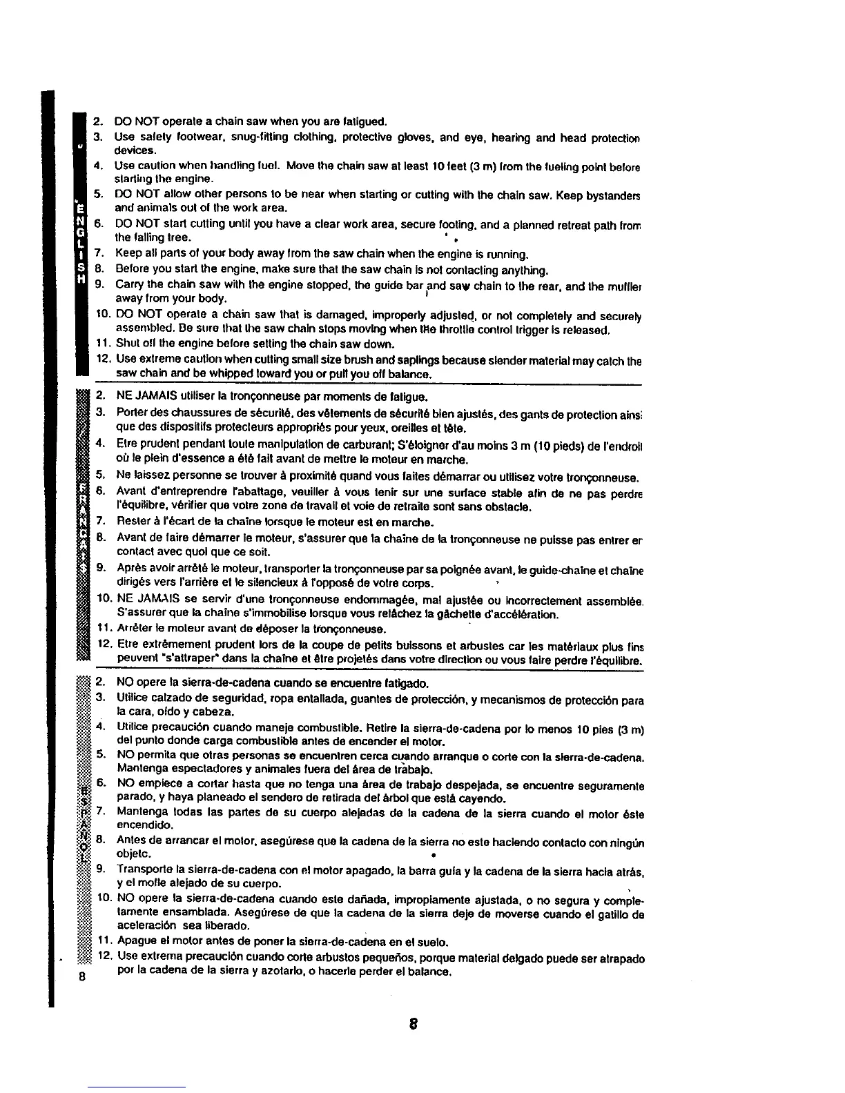 2. DO NOT operate a chain saw when you are fatigued.