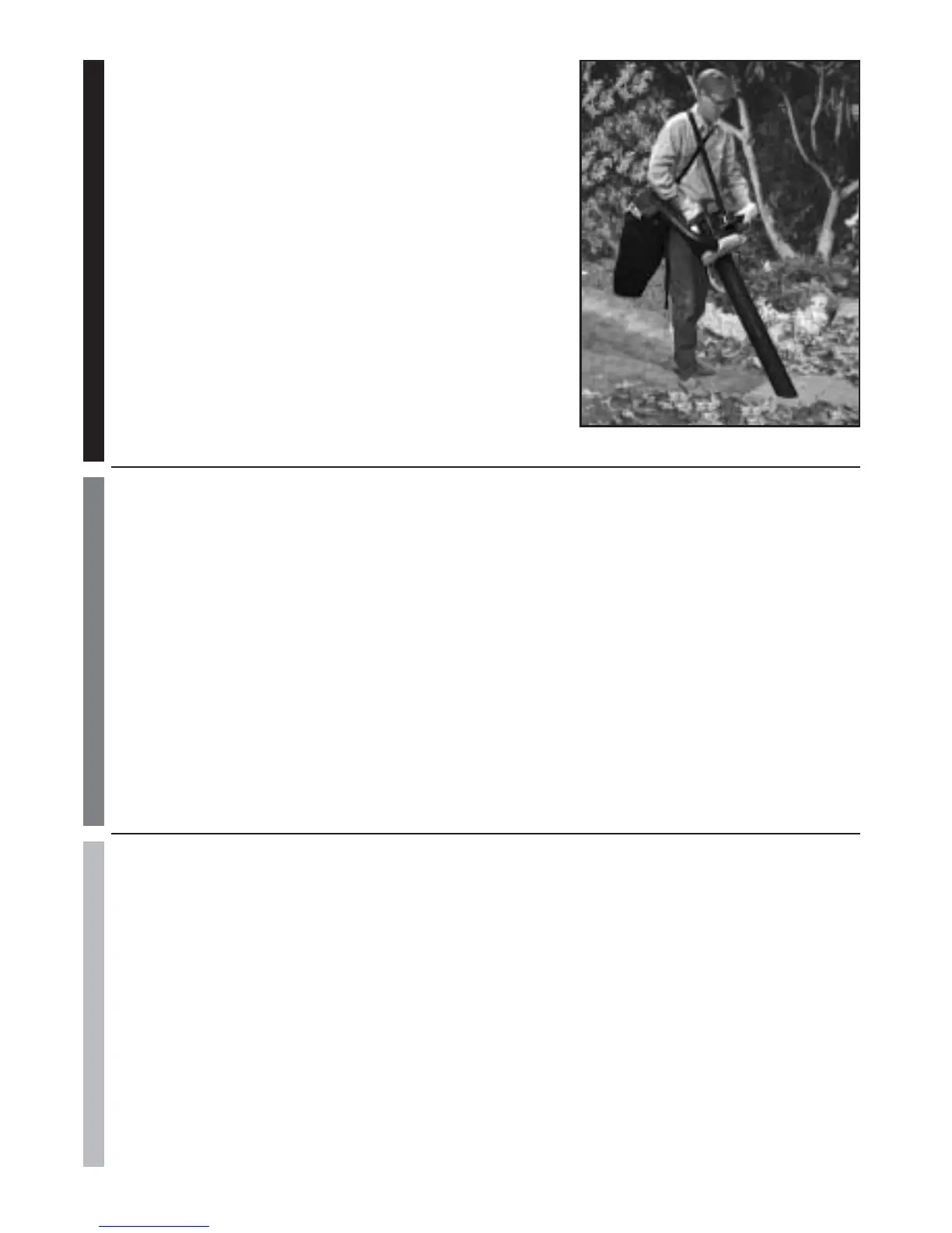 Cet appareil est conçu pour aspirer des matériaux tels feuilles, petits morceaux de papier, brindilles, herbes… Ne pas utilser cet appareil