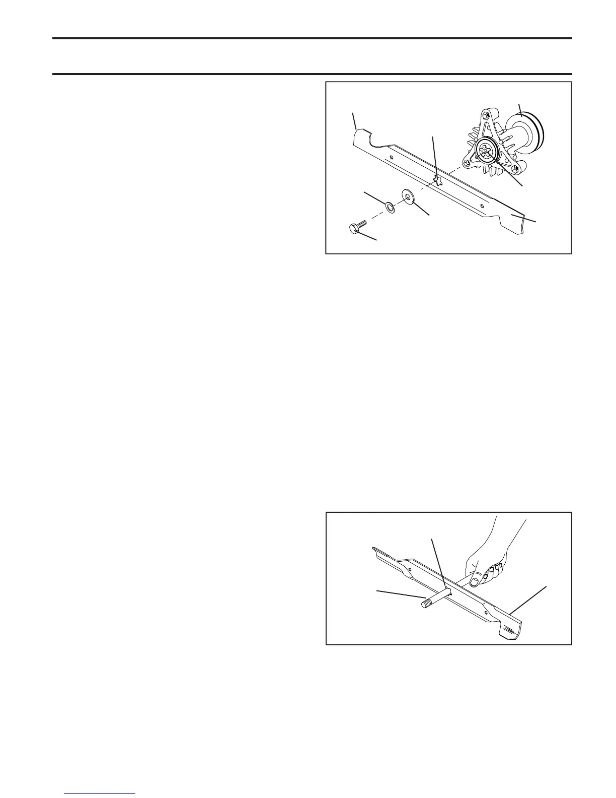 • Remove blade bolt, lock washer and fl at washer se cur ing