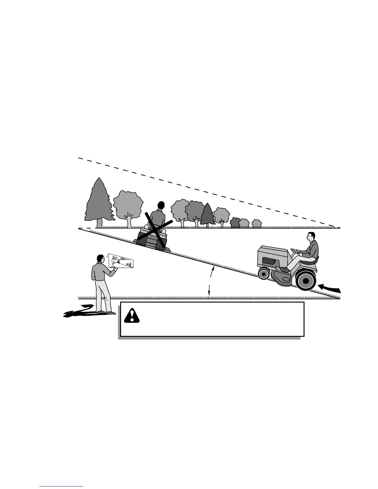 down the face of slopes, never across the face. Do not mow