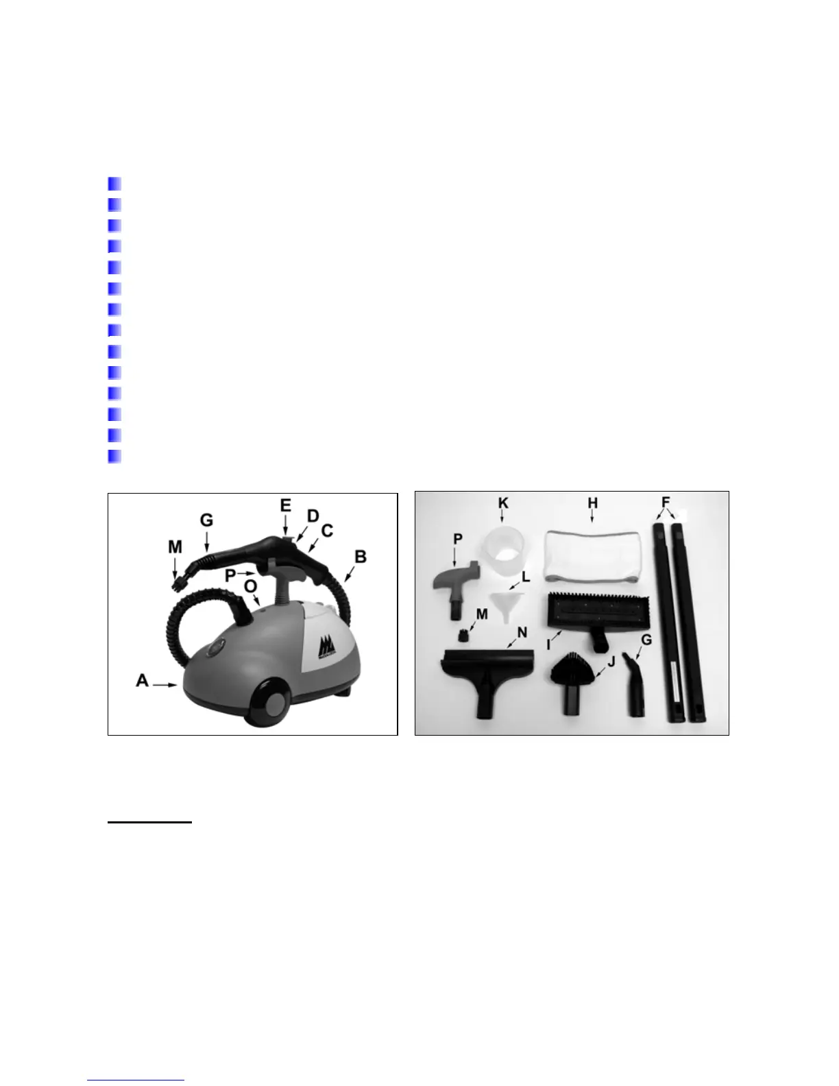 Your MC1275 Steam Cleaner package includes the following features and