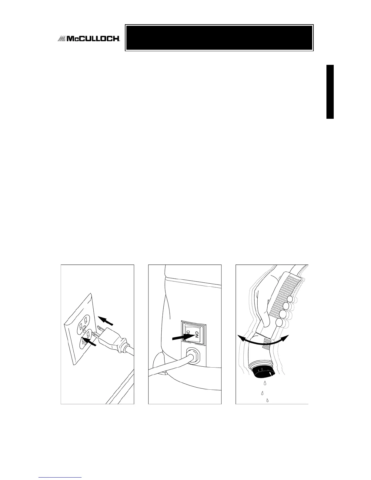 On/Off Switch to “Off” position and unplug power cord from electrical outlet.