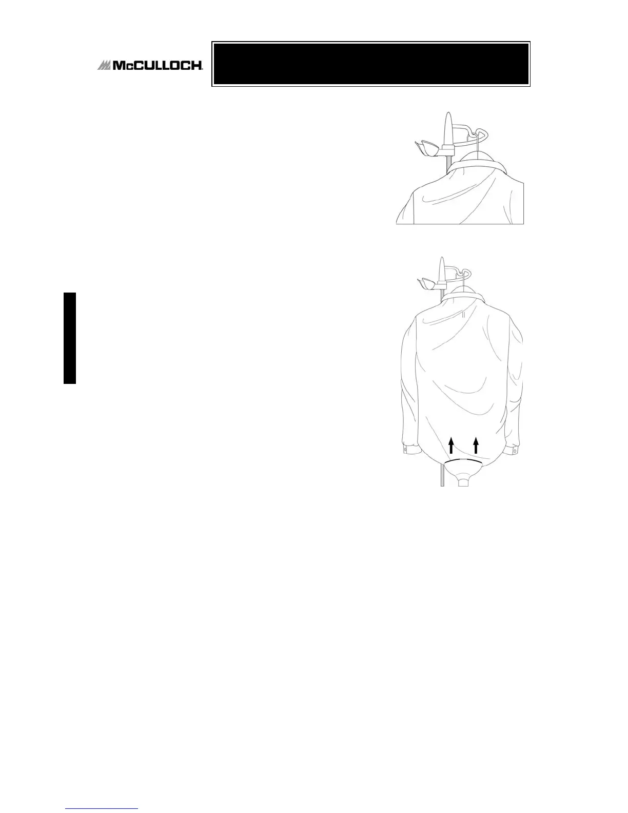 inferior de la prenda de vestir. El vapor subirá a lo largo