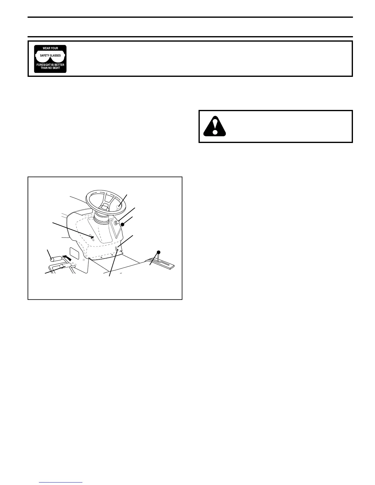 in severe eye dam age. Always wear safety glass es or eye shields while operating your tractor or