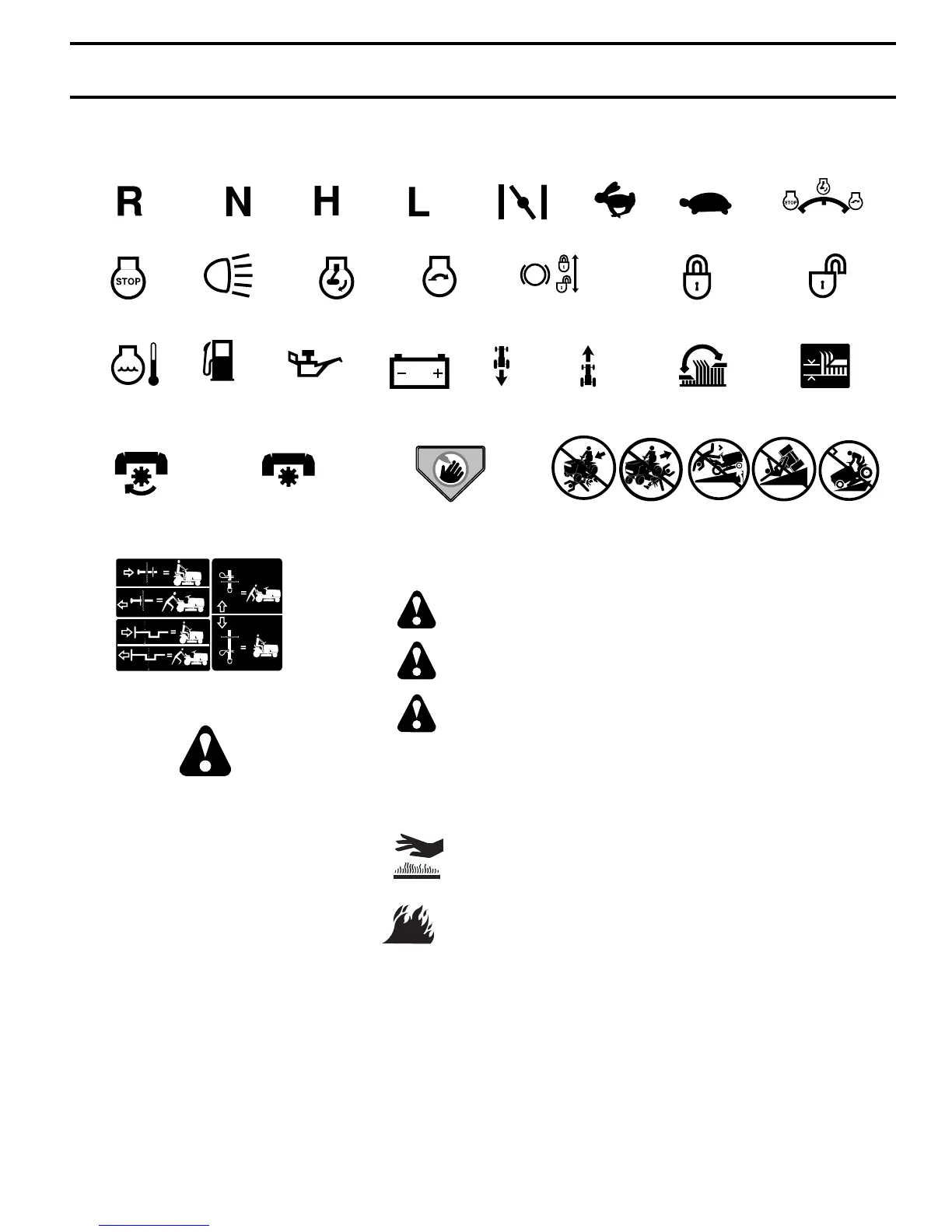 These symbols may appear on your tractor or in literature supplied with the product. Learn and understand their meaning.