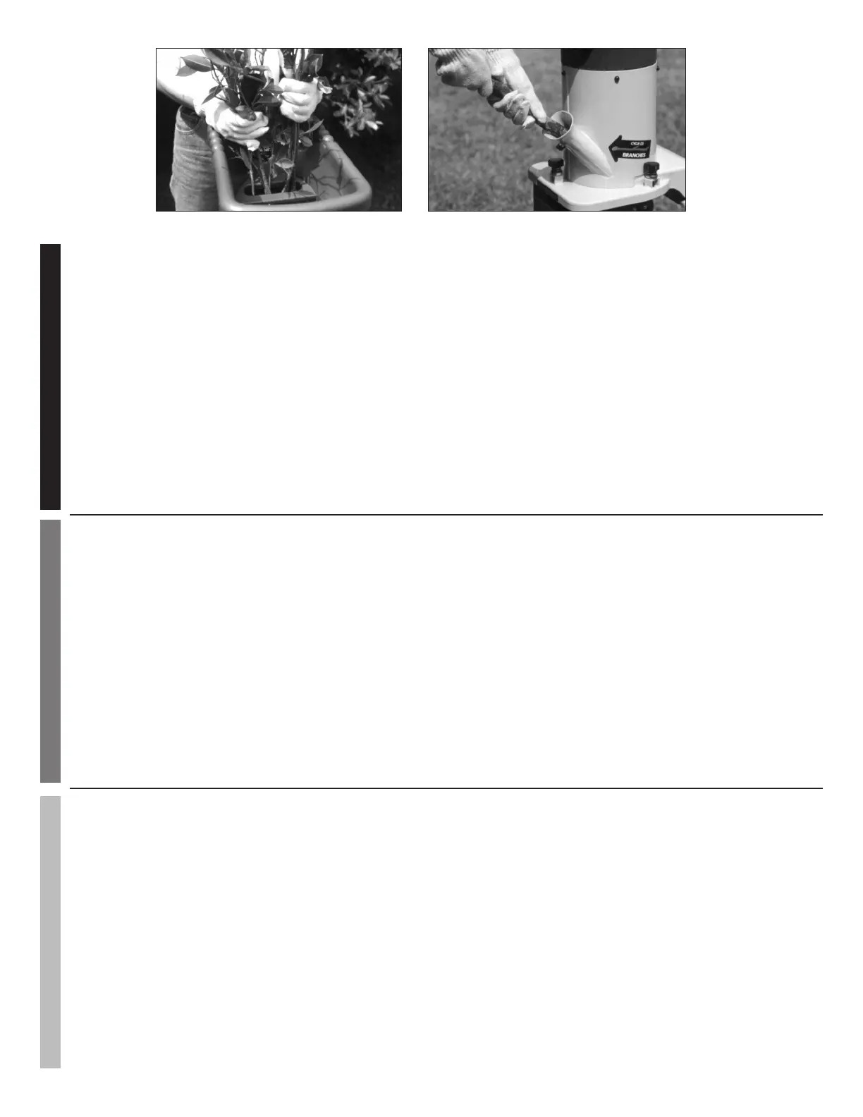 The elongated chute located at the rear of the machine is specially designed to accept solid garden clippings and branch-