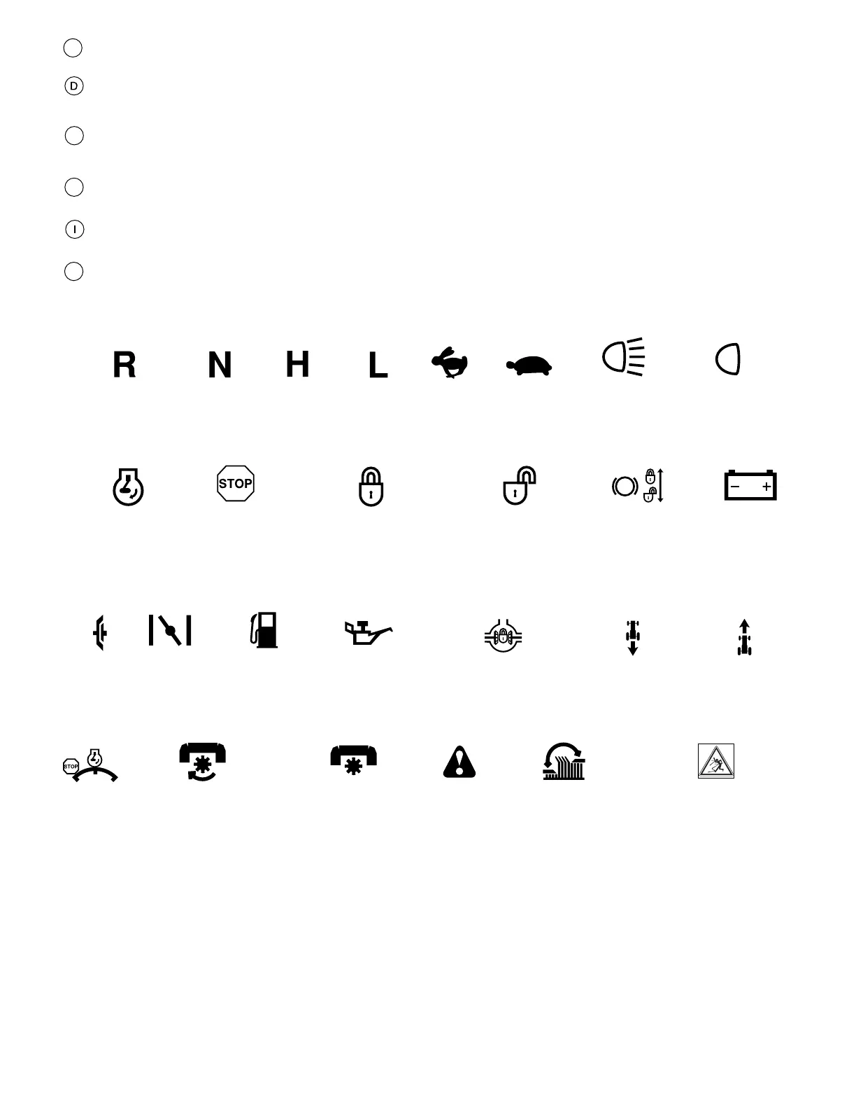 These symbols may appear on your tractor or in the literature supplied with the product. Learn and understand their meaning.