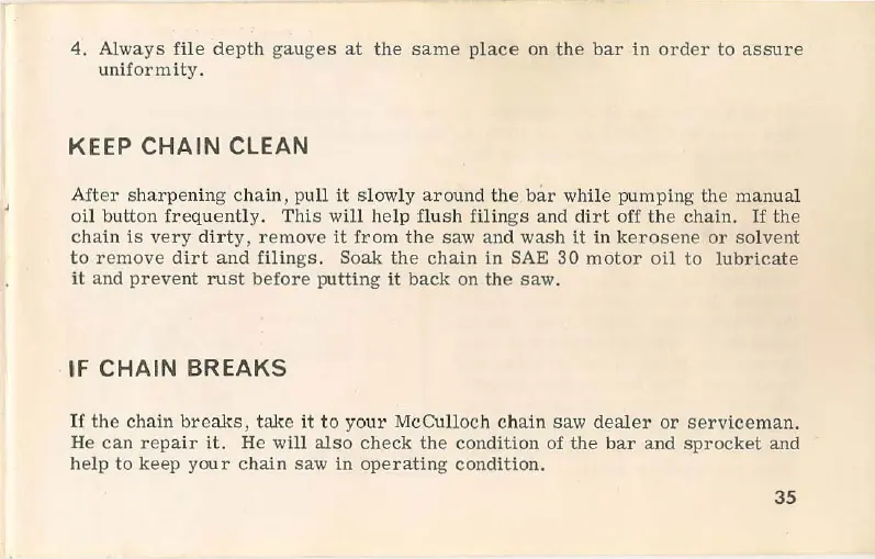 McCulloch Mini-Mac 6 - Chain Care and Repair; Keeping the Chain Clean; Handling Chain Breaks
