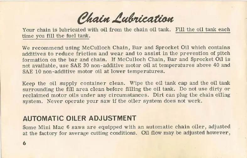 McCulloch Mini-Mac 6 - Chain Lubrication; Automatic Oiler Adjustment