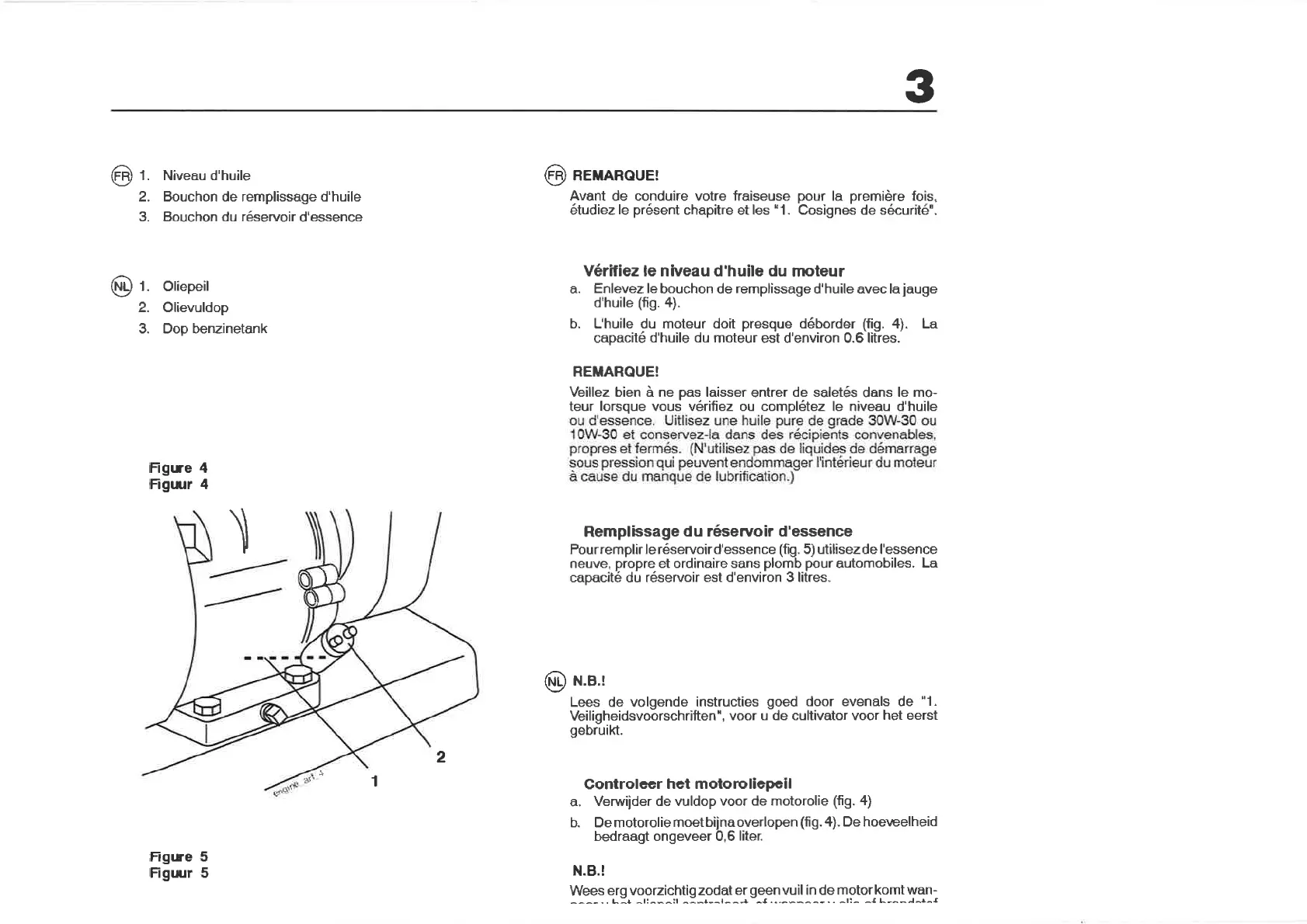 teur lorsque vous vérifiez ou complétez le niveau d'huile