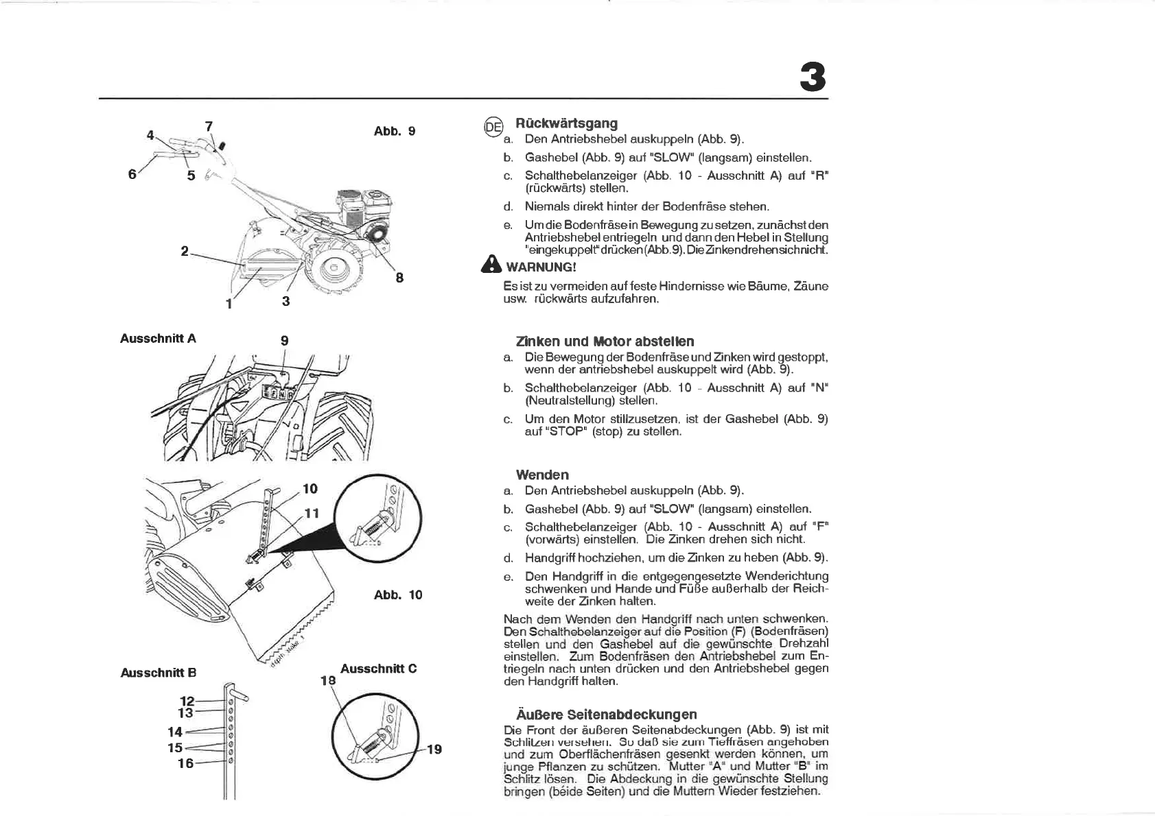 d. Niemals direkt hinter der Bodenfråse stehen.
