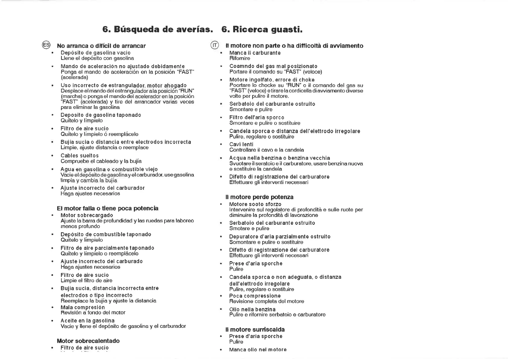Svuotare il seratoio e il carburatore, usare benzina nuova
