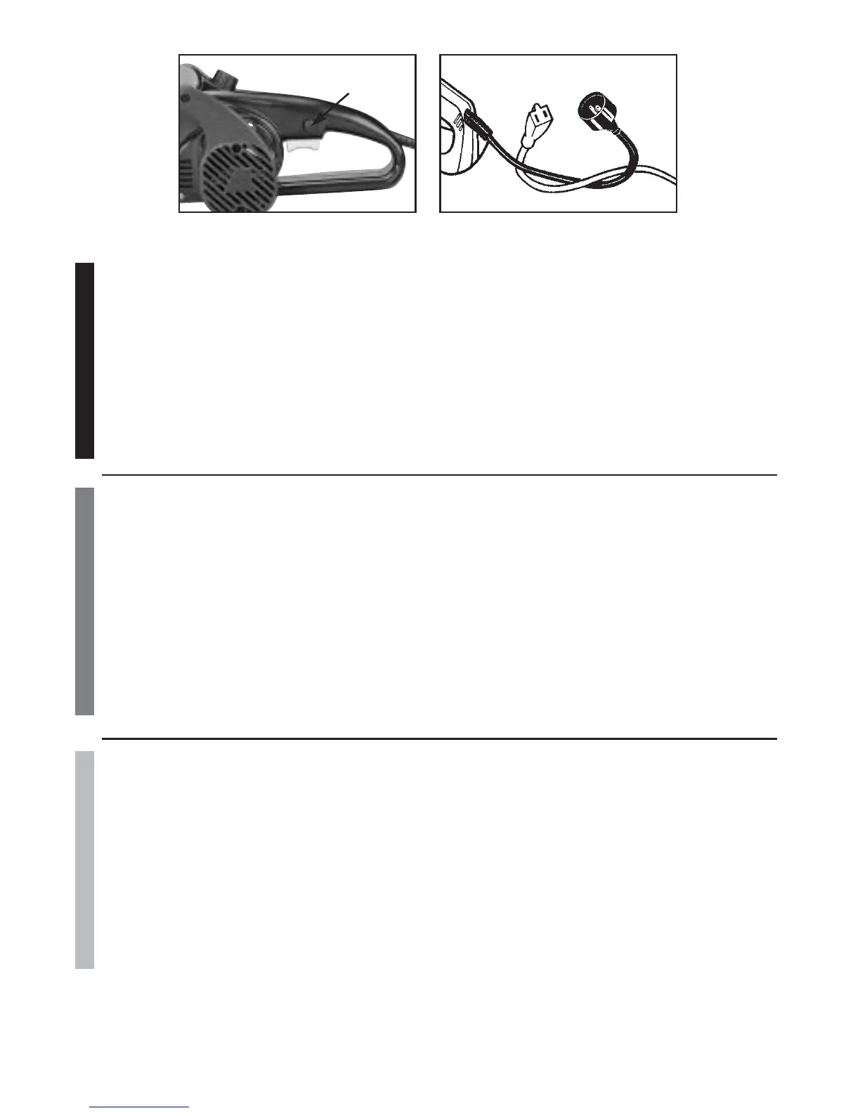 Quand vous utilisez une tronçonneuse électrique, branchez-la au prolongateur uniquement quand vous êtes prêt à