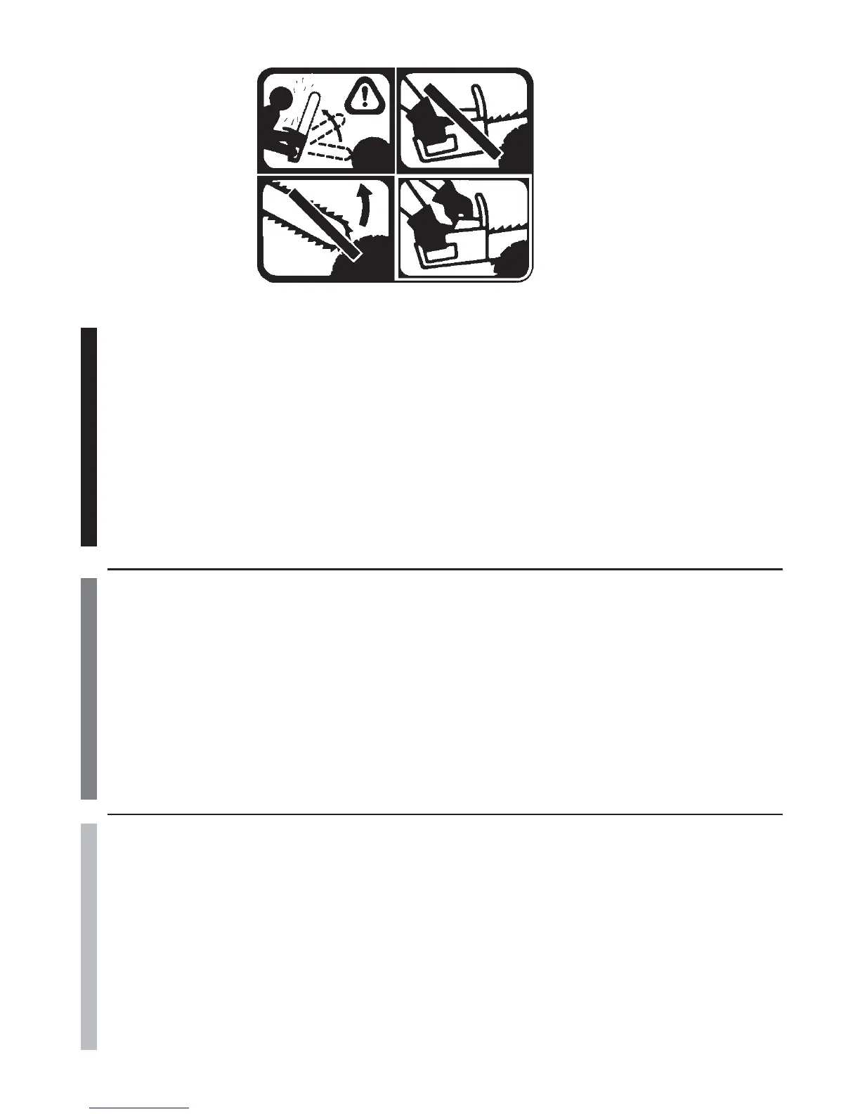 ator or to anyone standing close by. Always be alert because rotational kickback and pinch kickback are major chain