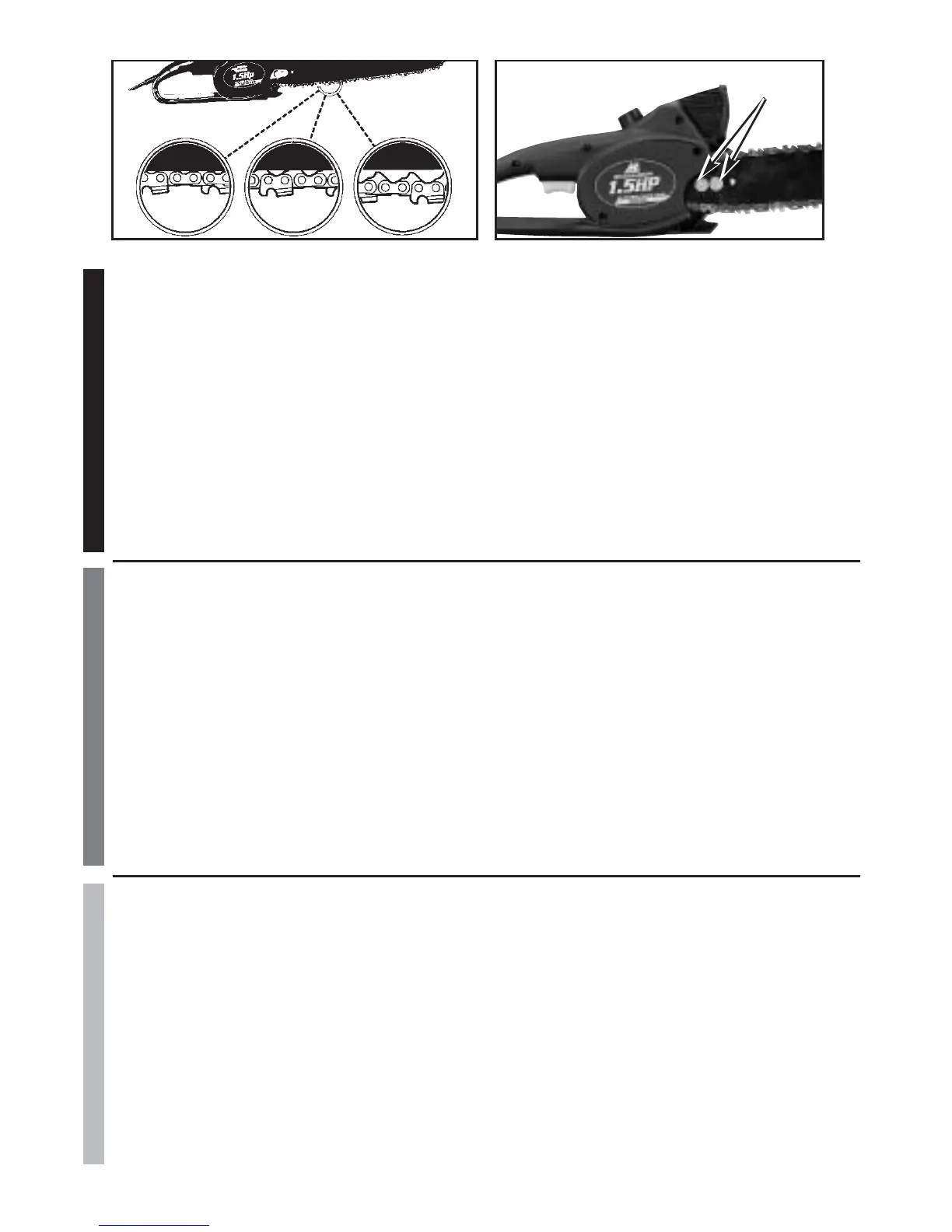 REMARQUE: La chaîne est trop tendue s’il est difficile de la faire tourner ou si elle accroche sur le guide-chaîne ;