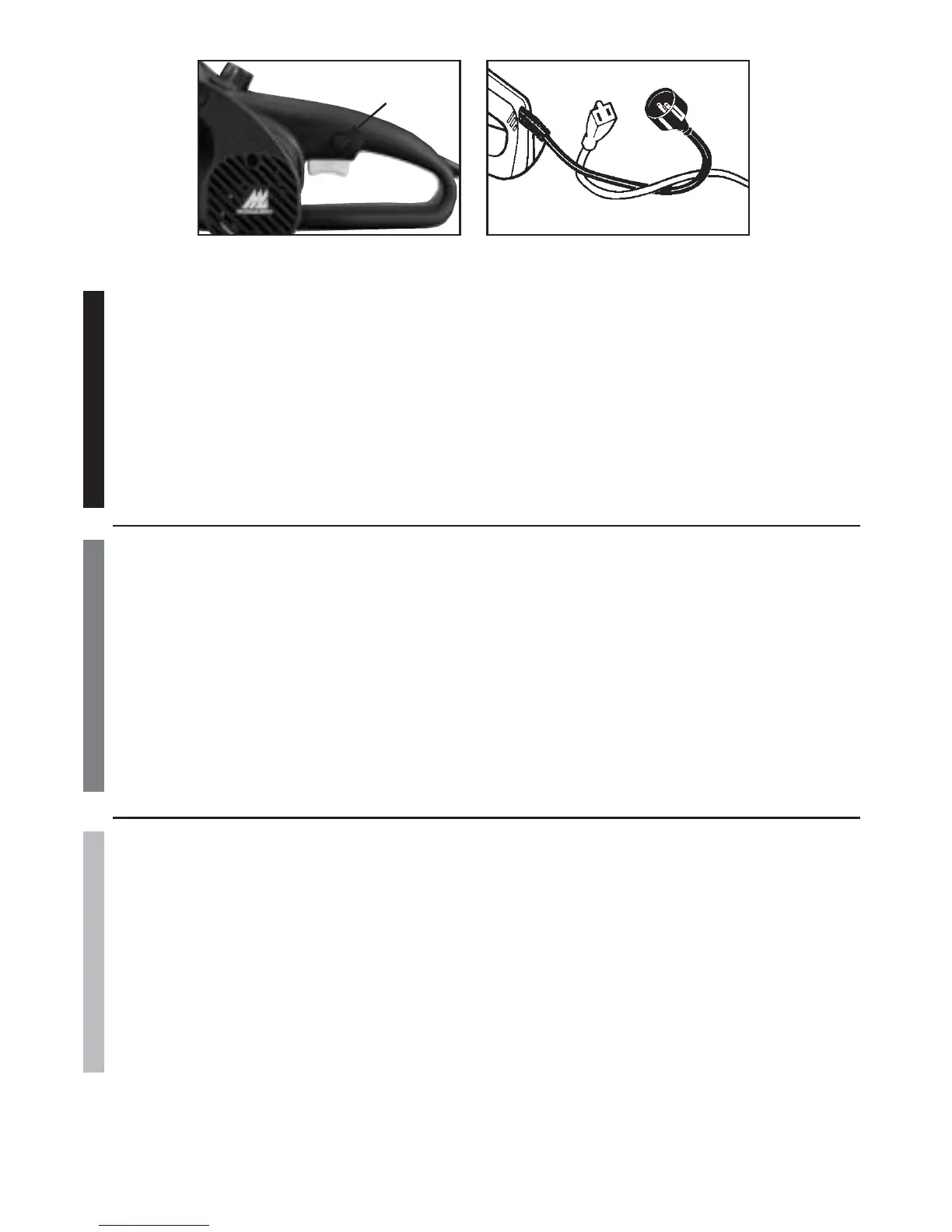 When using an electric chain saw, plug it into the extension cord only when you are ready to cut wood. Connect the