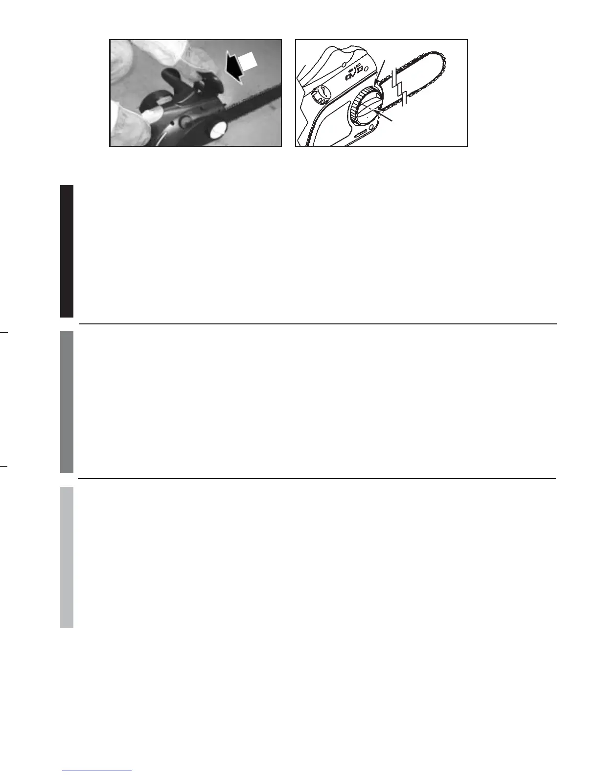 2. After adjustment and while wearing heavy duty work gloves, move the saw chain back and forth on the guide bar