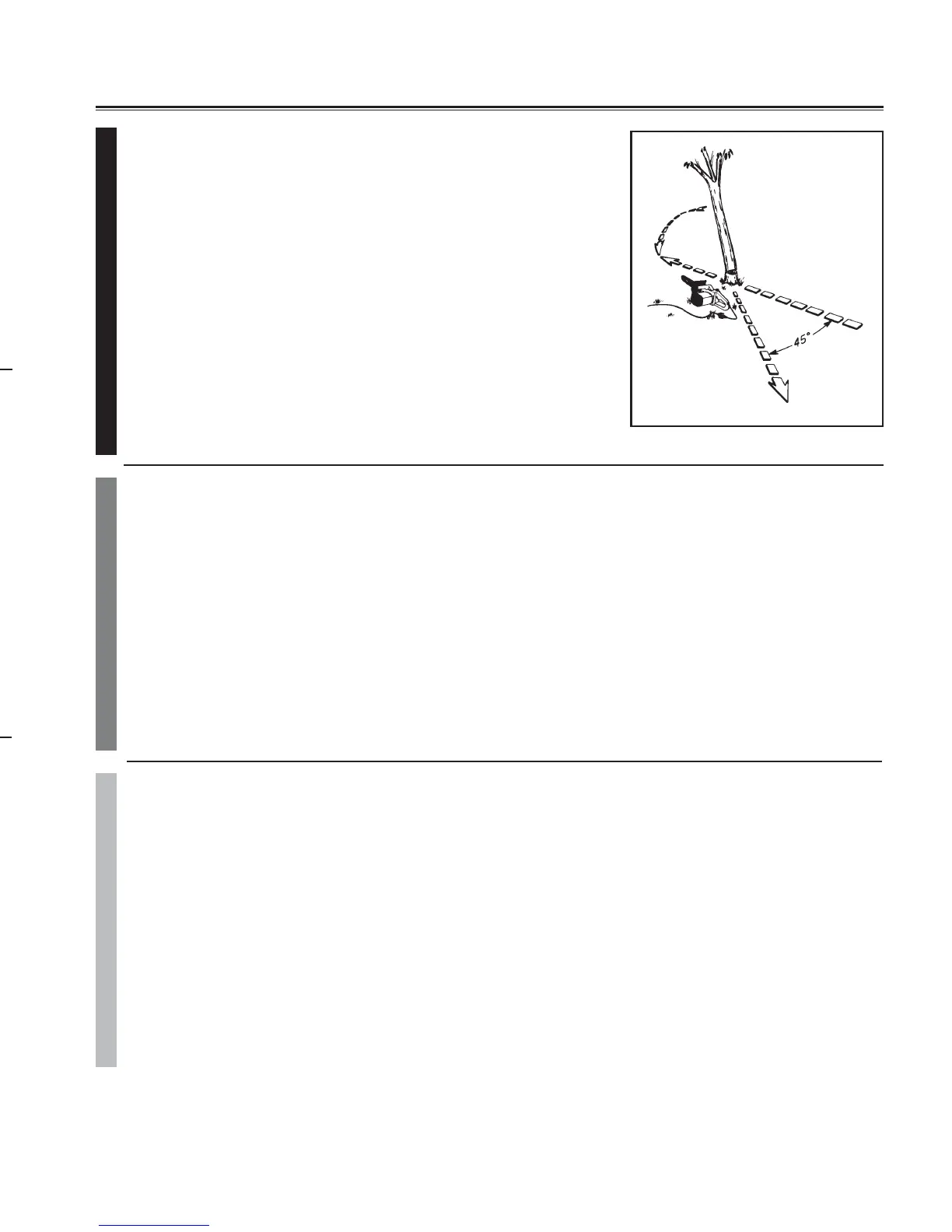 Pour l’abattage d’un arbre sur une pente, l’utilisateur de la tronçonneuse devrait se trouver du côté ascendant du ter-