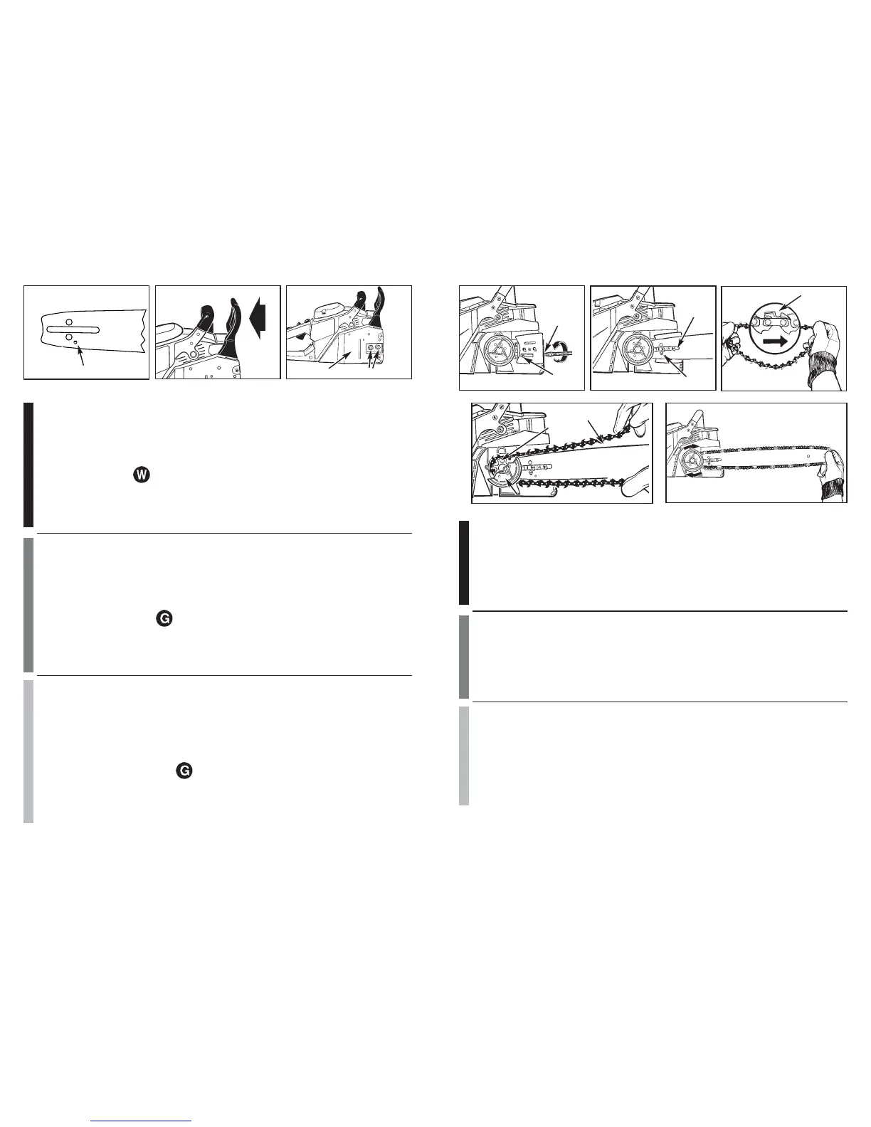 Pour s’assurer que la chaîne et guide-chaîne soient huilés, UTILISER EXCLUSIVEMENT LE TYPE DE GUIDE-CHAINE