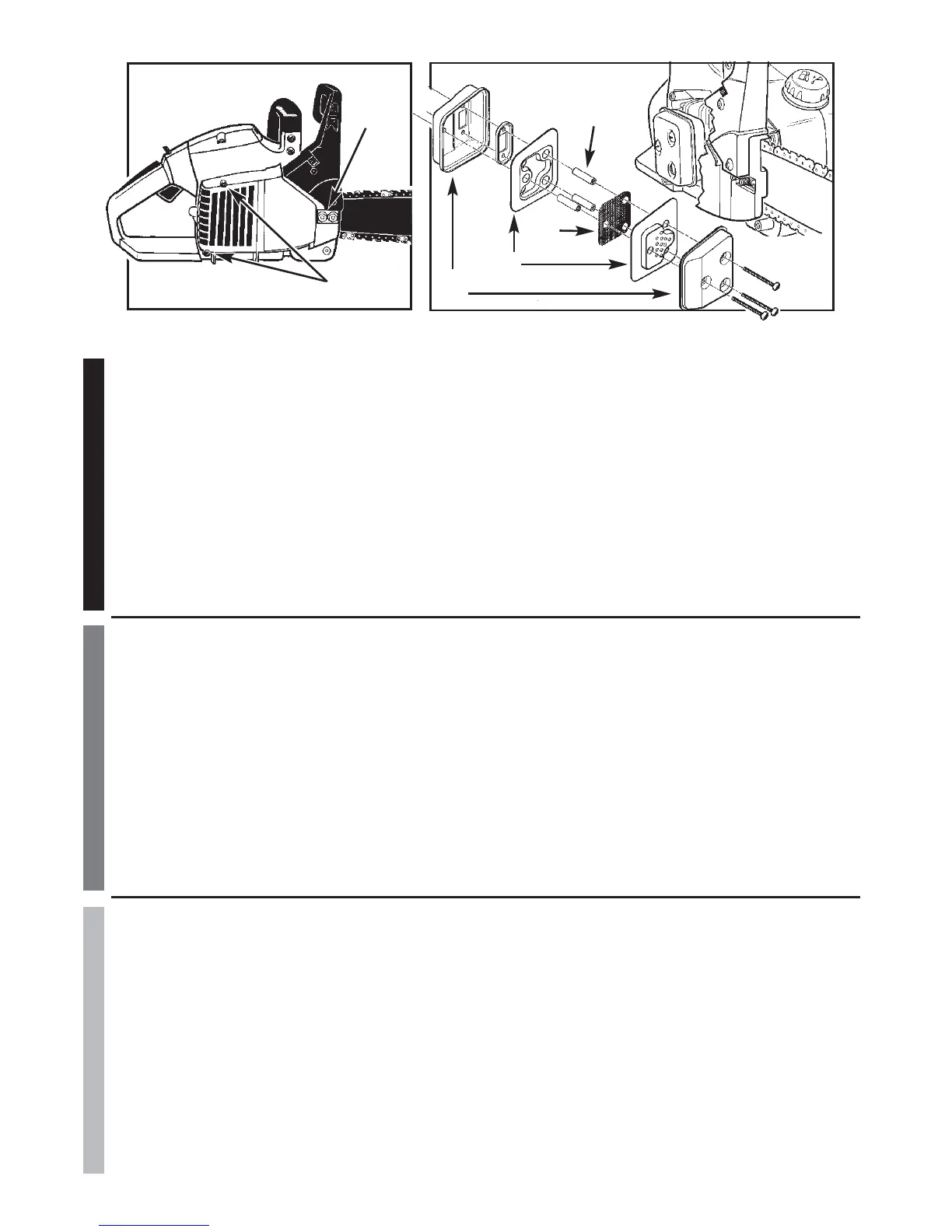 5.Reassemble the muffler components and install the muffler to the cylinder. Tighten screws securely.