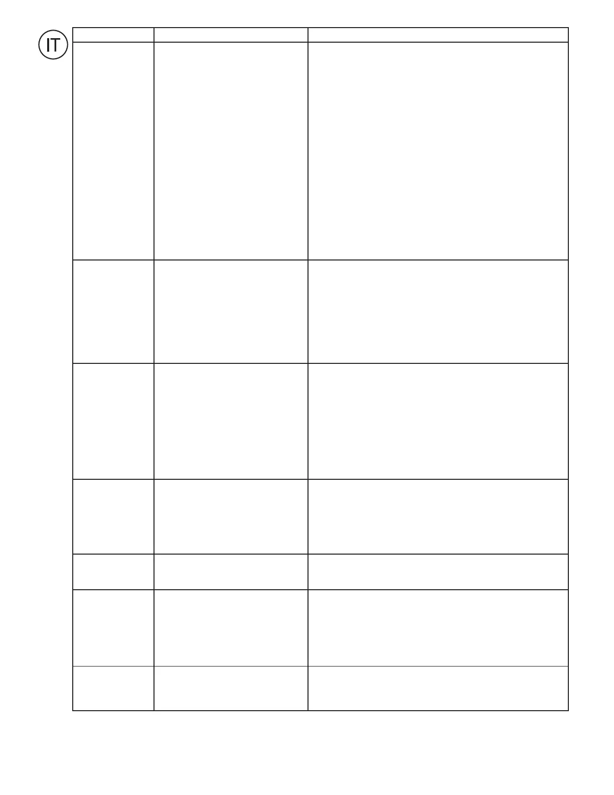 5. Coclea / ventola intasate. 5. Togliere detriti o corpi estranei dalla coclea / ventola.