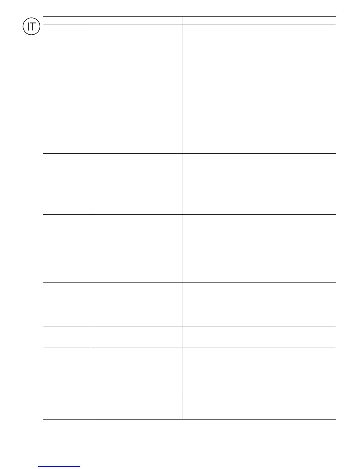 5. Coclea / ventola intasate. 5. Togliere detriti o corpi estranei dalla coclea / ventola.