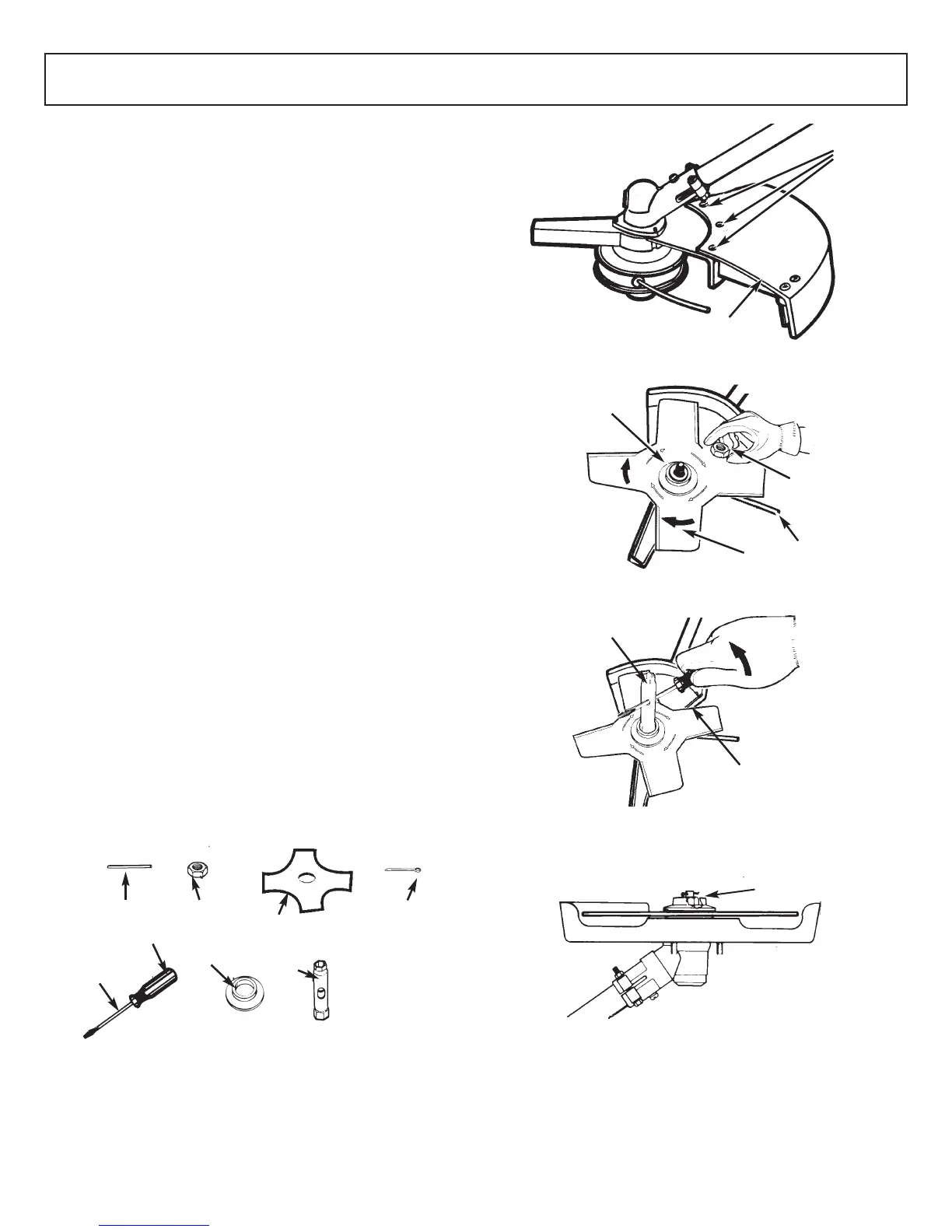 4. Install blade (D) with teeth pointing CLOCKWISE as